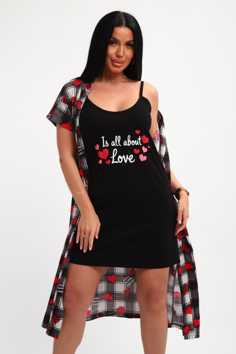 Пеньюар двойка женский 01068 хлопок (р-ры: 46-56) черный