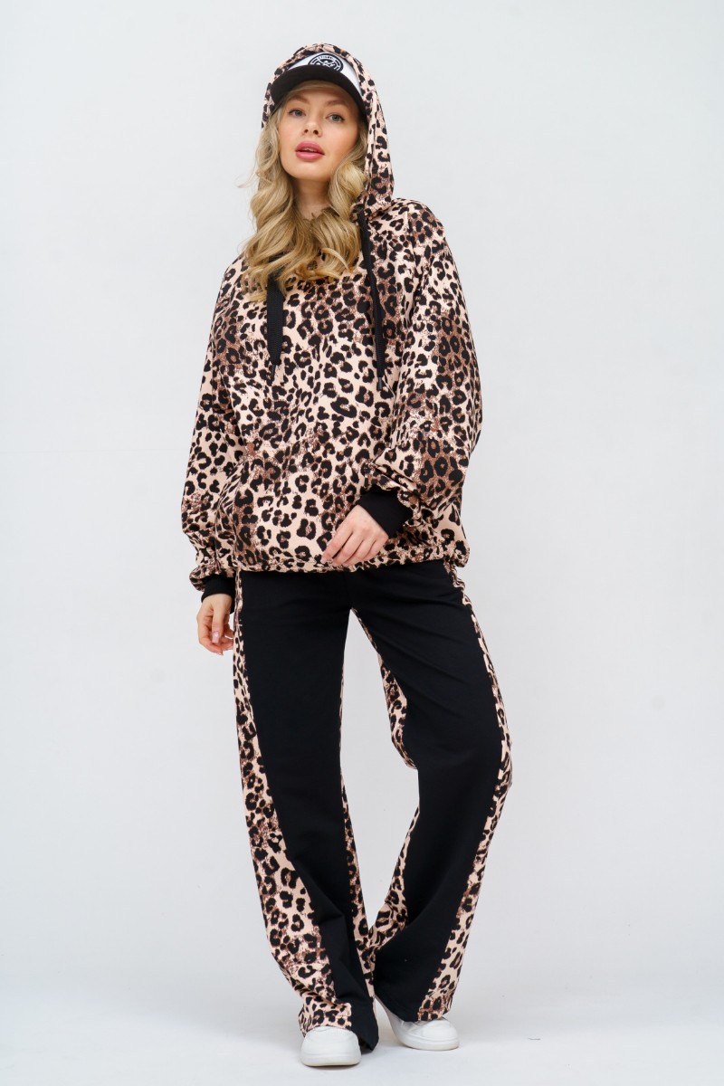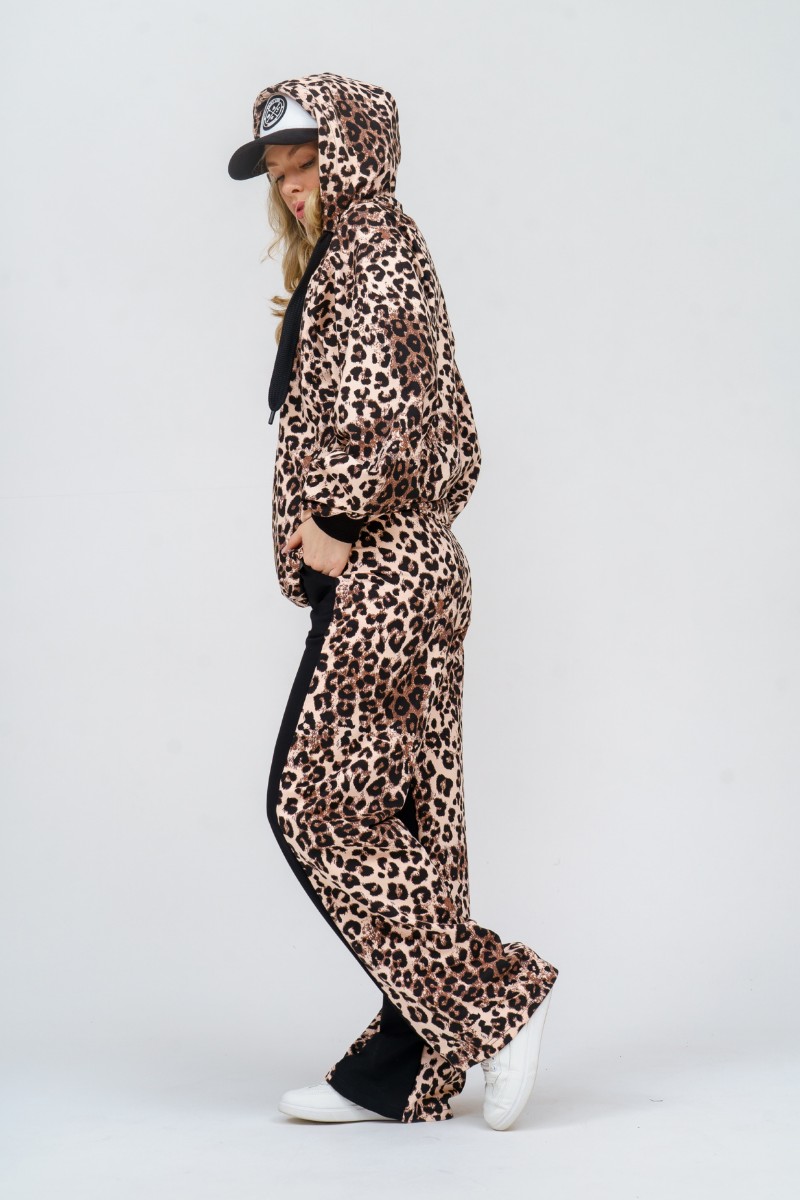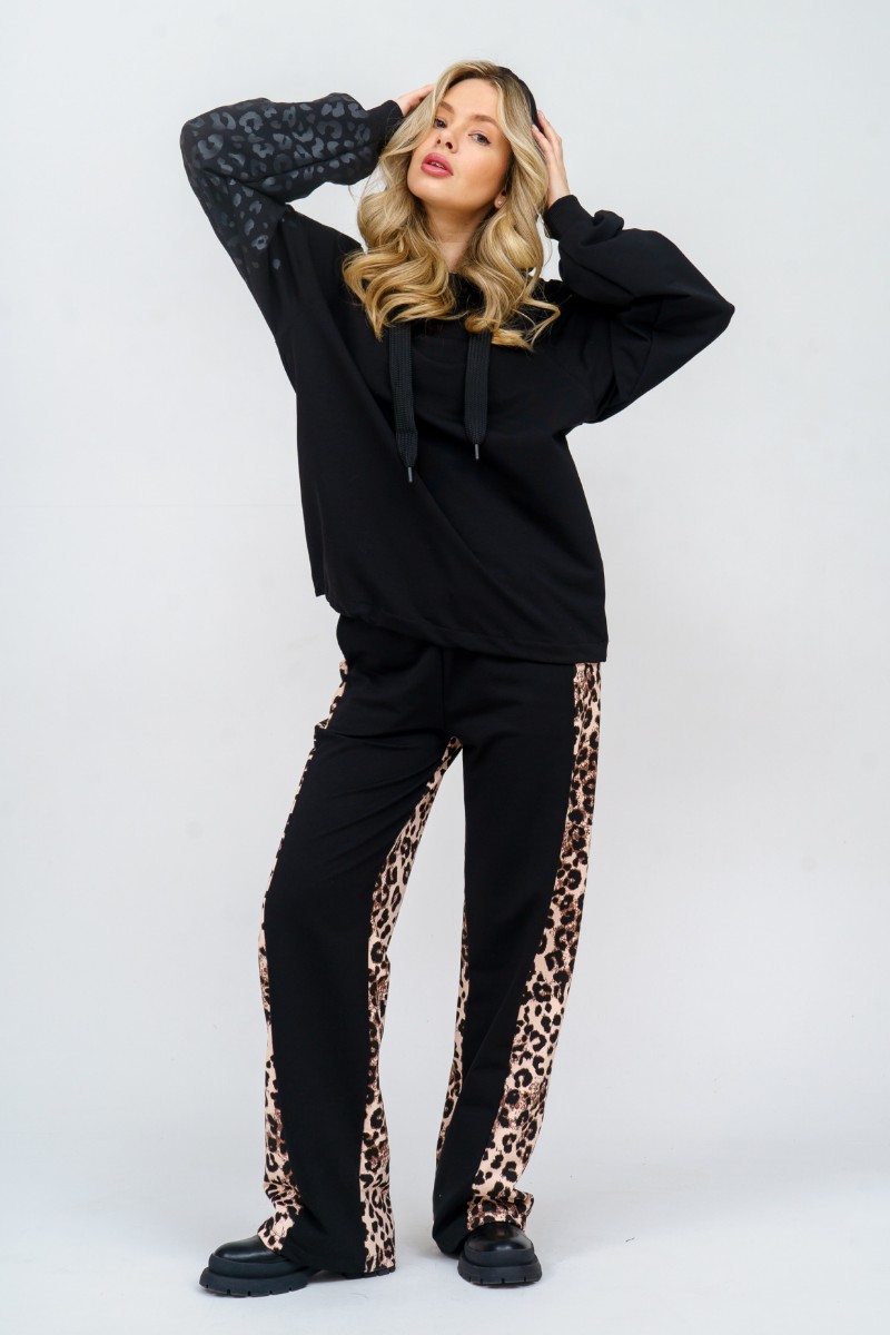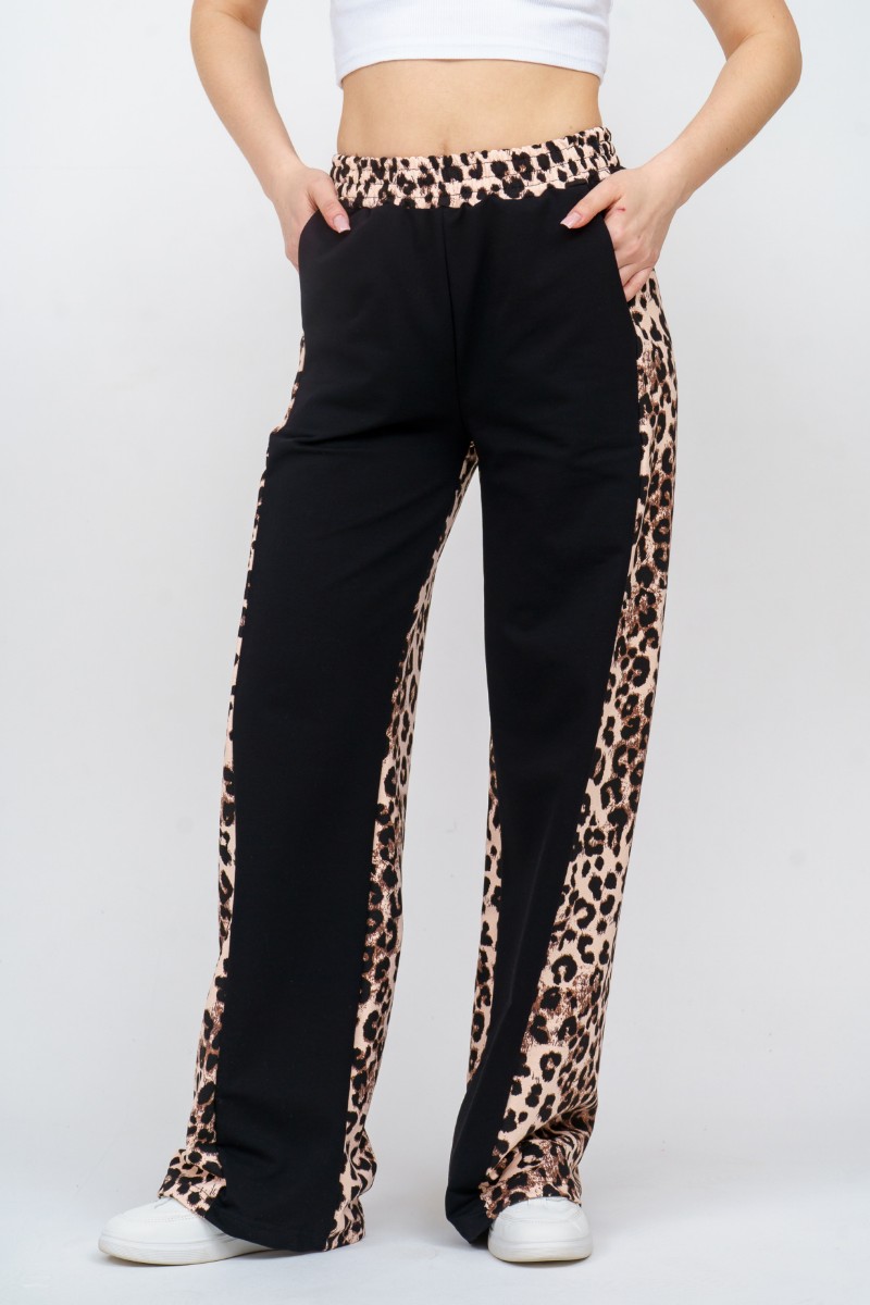 Представляем Вашему вниманию стильные женские брюки, сшитые из приятного телу, высококачественного футера с лайкрой. Контрастные вставки с леопардовым принтом добавляют модели больше оригинальности.