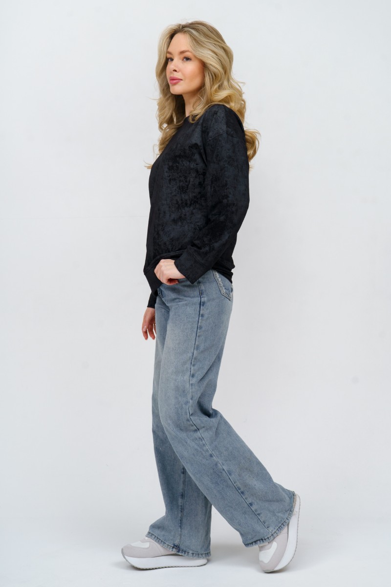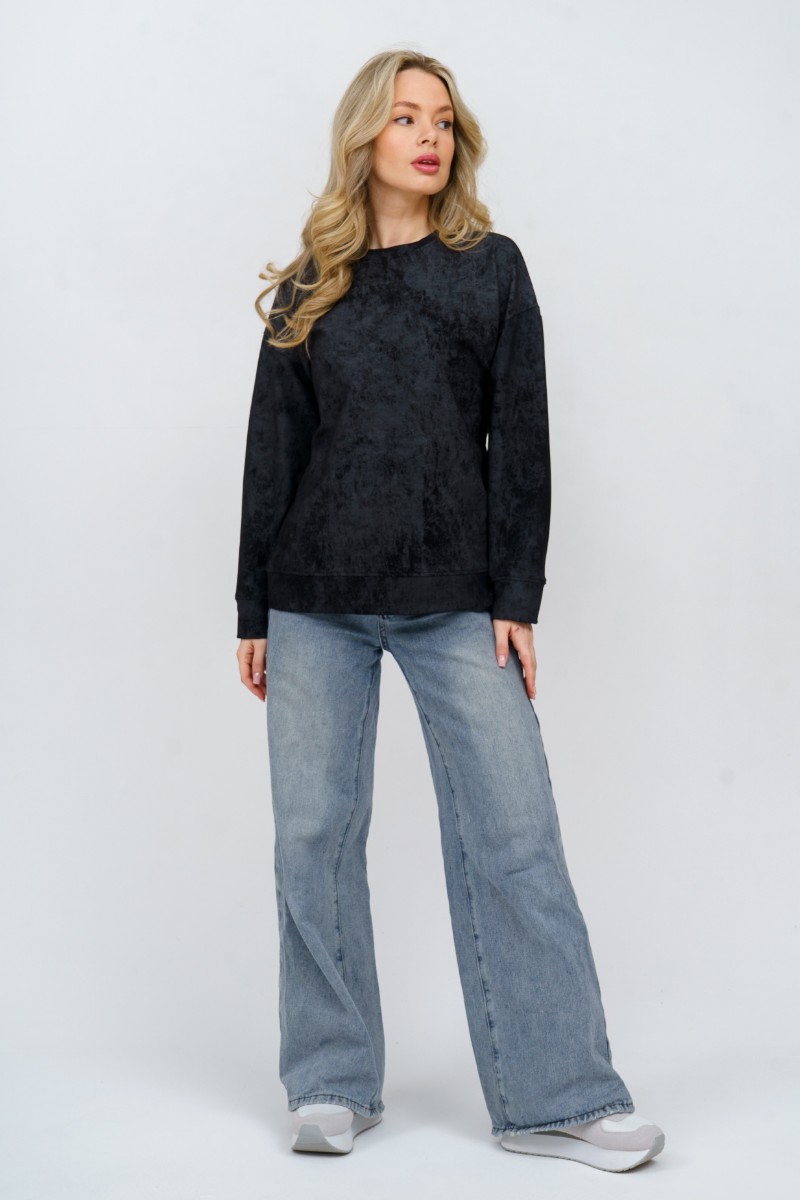 Свитшот женский 985 футер с лайкрой (р-ры: 44-58) черный винтаж