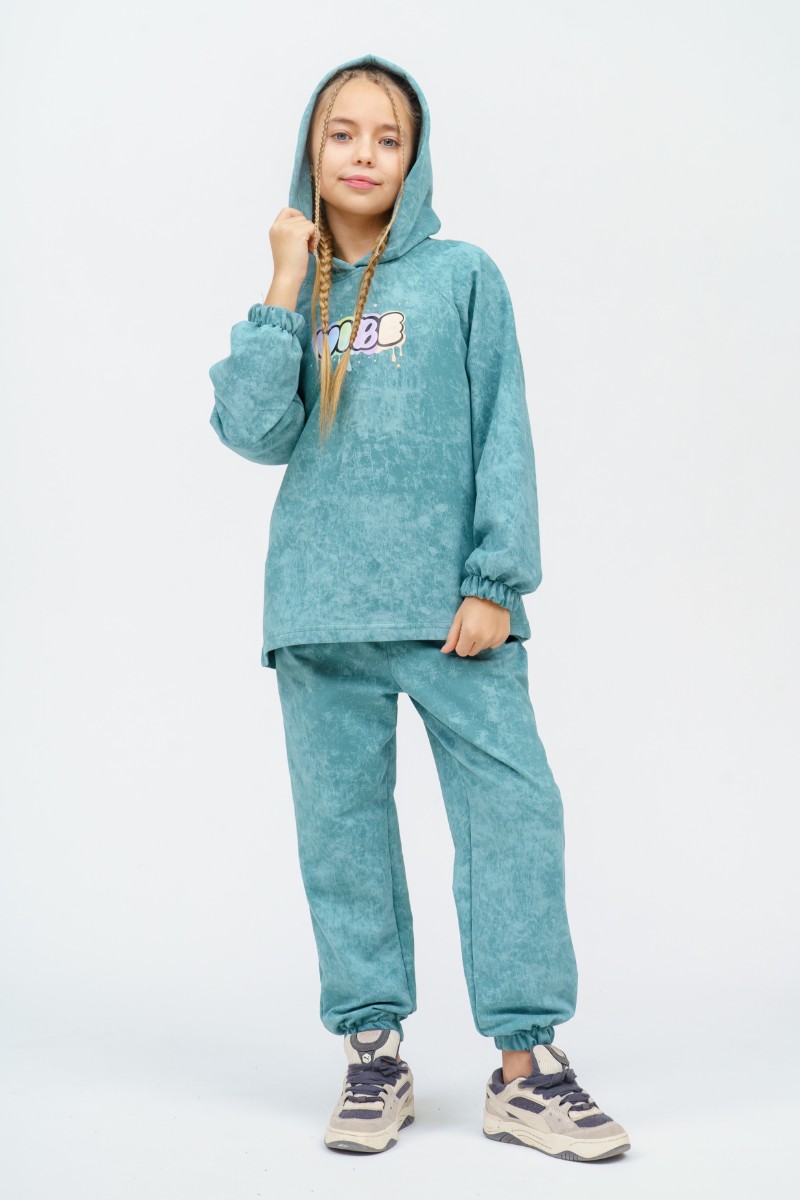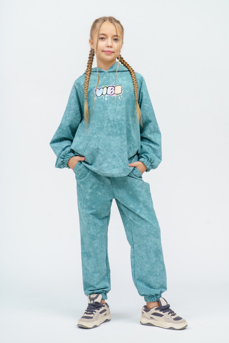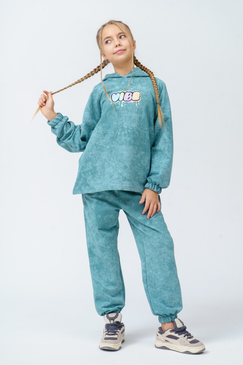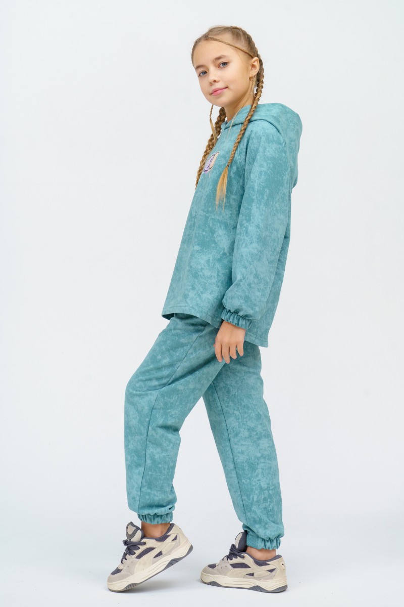 Представляем Вашему вниманию детский костюм двойку для девочки, сшитый из приятного телу, высококачественного футера 2-х нитки пенье. Состоит из толстовки с капюшоном и однотонных брюк. Комплект обеспечит максимум комфорта и полную свободу движений в повседневной носке.