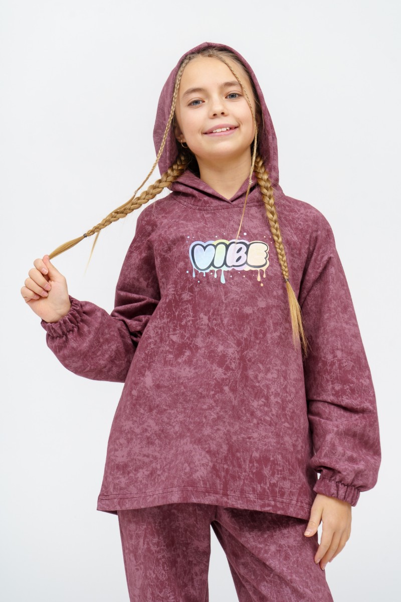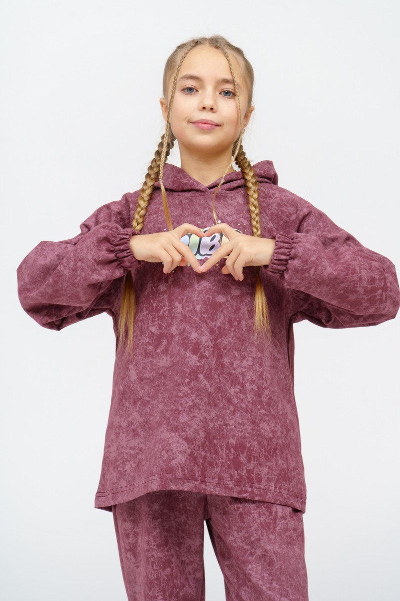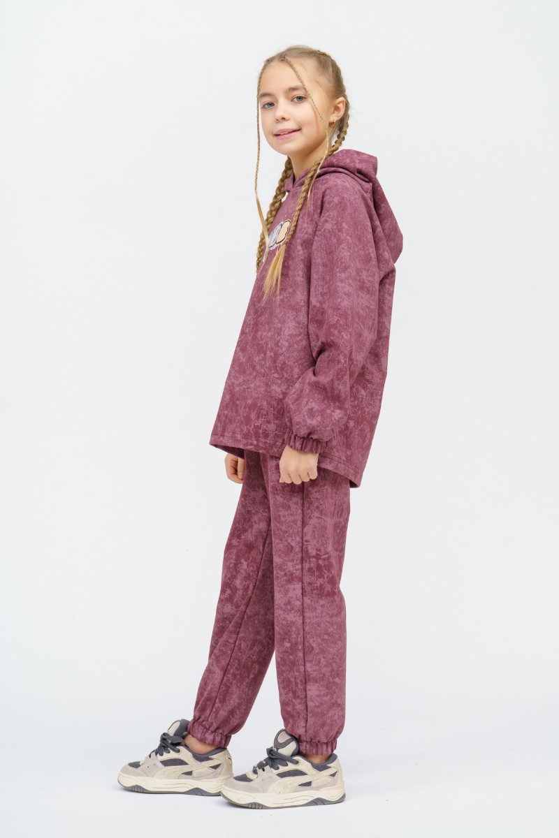 Представляем Вашему вниманию детский костюм двойку для девочки, сшитый из приятного телу, высококачественного футера 2-х нитки пенье. Состоит из толстовки с капюшоном и однотонных брюк. Комплект обеспечит максимум комфорта и полную свободу движений в повседневной носке.