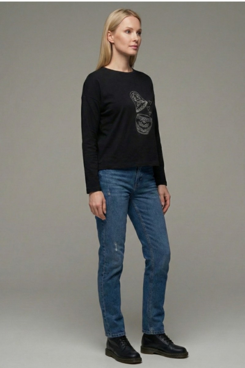 Лонгслив женский Ч 10638 трикотажное полотно (р-ры: 42-64) черный