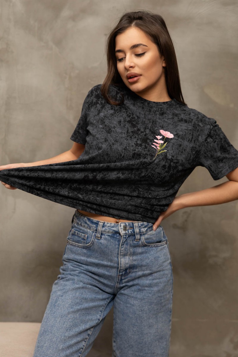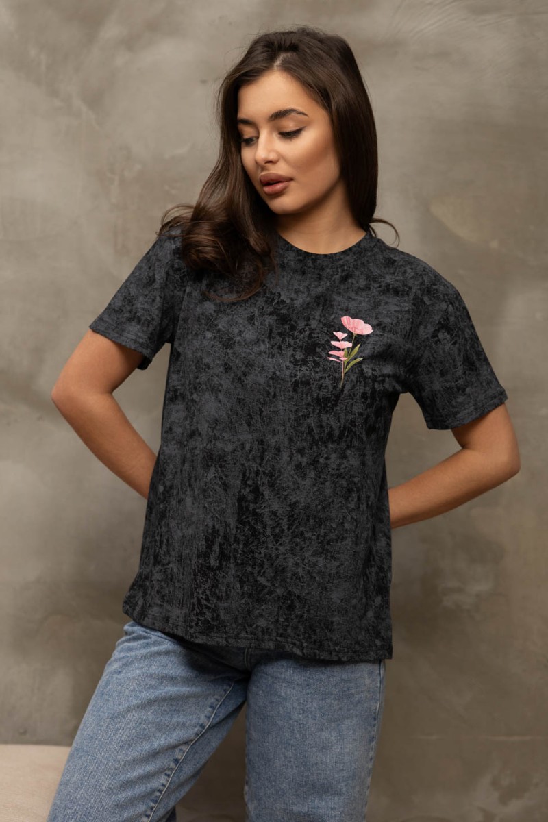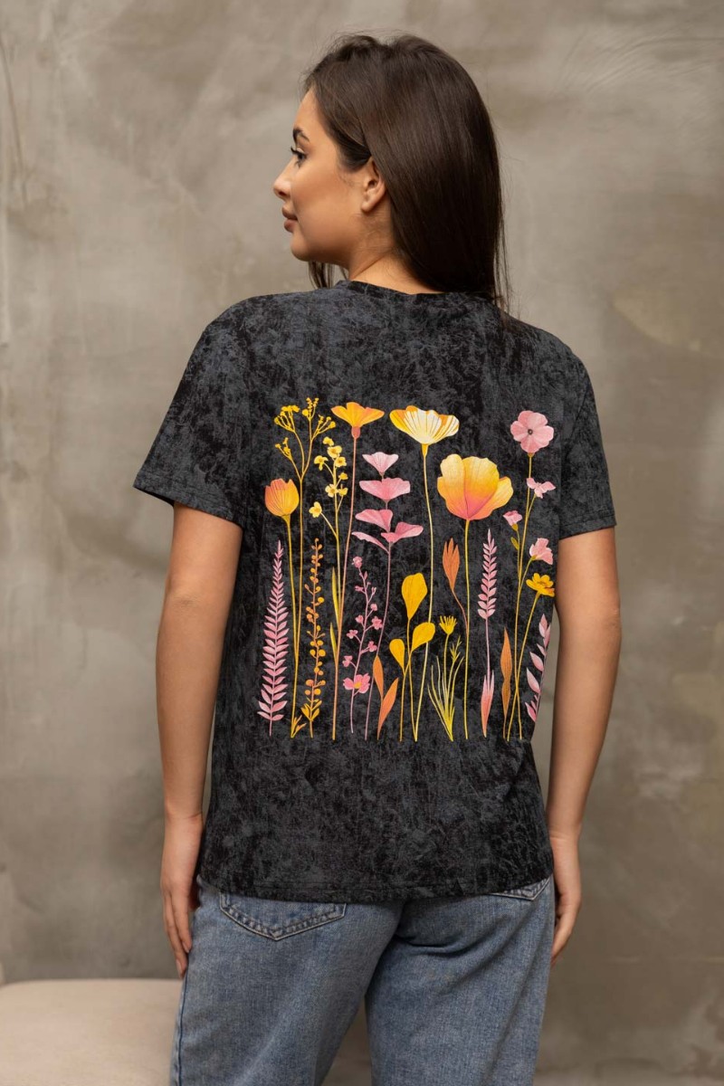 Представляем Вашему вниманию женскую базовую футболку, сшитую из приятного телу, дышащего хлопка с эффектом варенки, спереди и сзади нанесен дизайнерский принт, методом шелкографии. Хорошо сочетается с любым низом, обеспечивая максимум комфорта и полную свободу движений в повседневной носке.