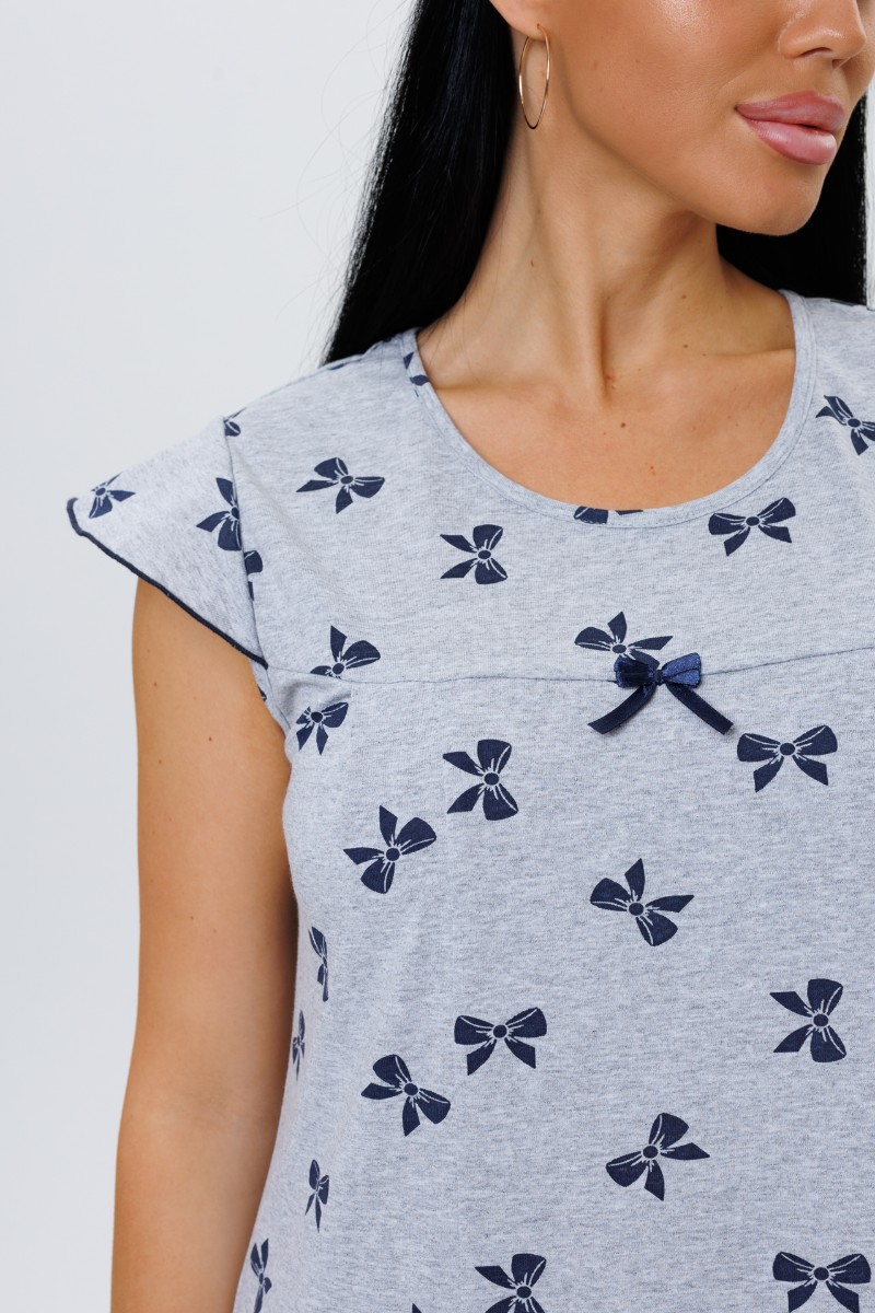 Сорочка женская №2120 хлопок-полиэстер (р-ры: 46-56) серый-бантики