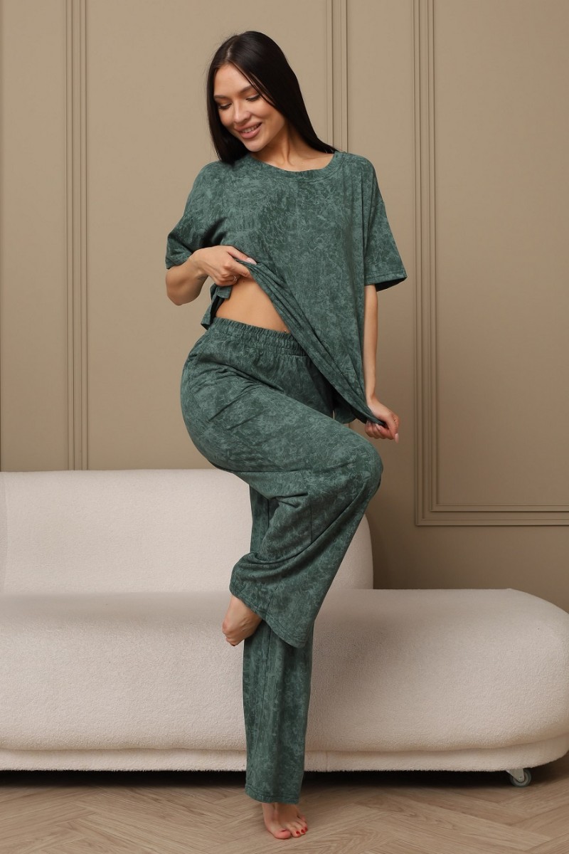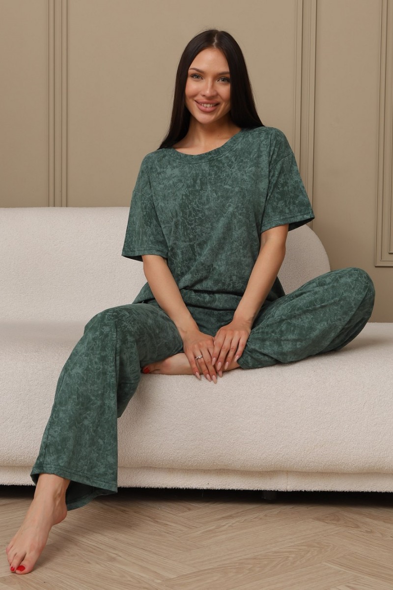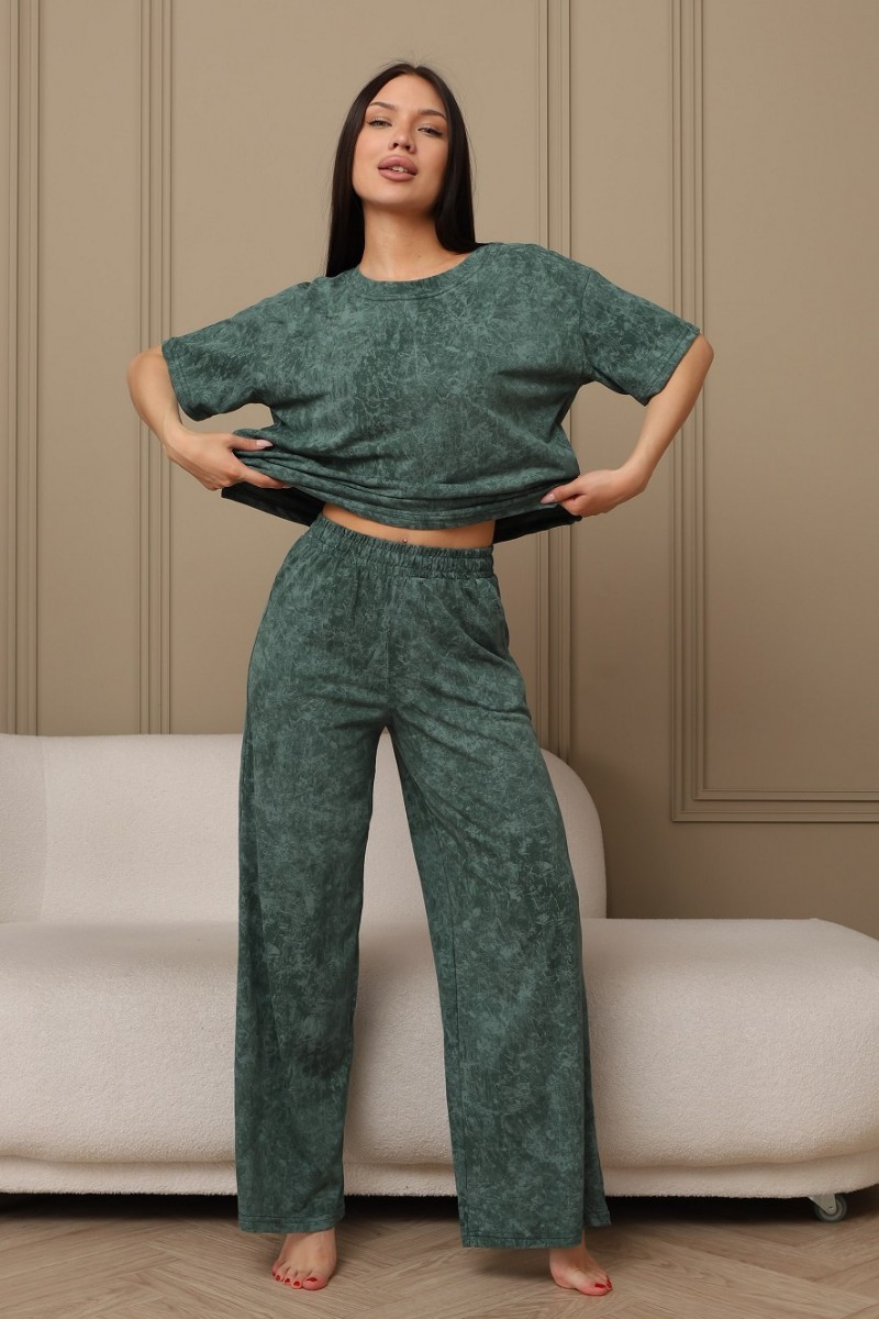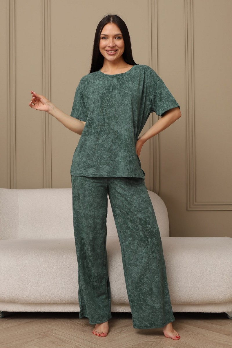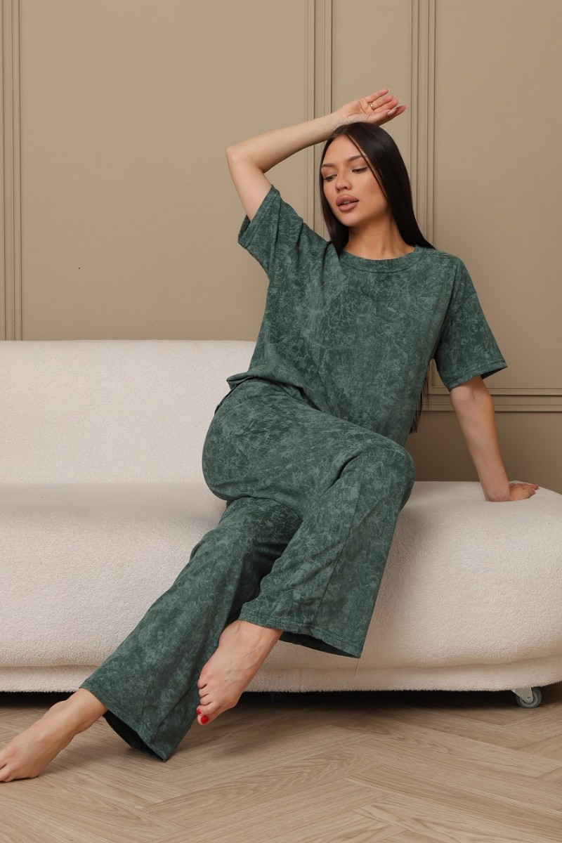 Костюм двойка женский 724 кулирка (р-ры: 44-54) зеленый-варенка
