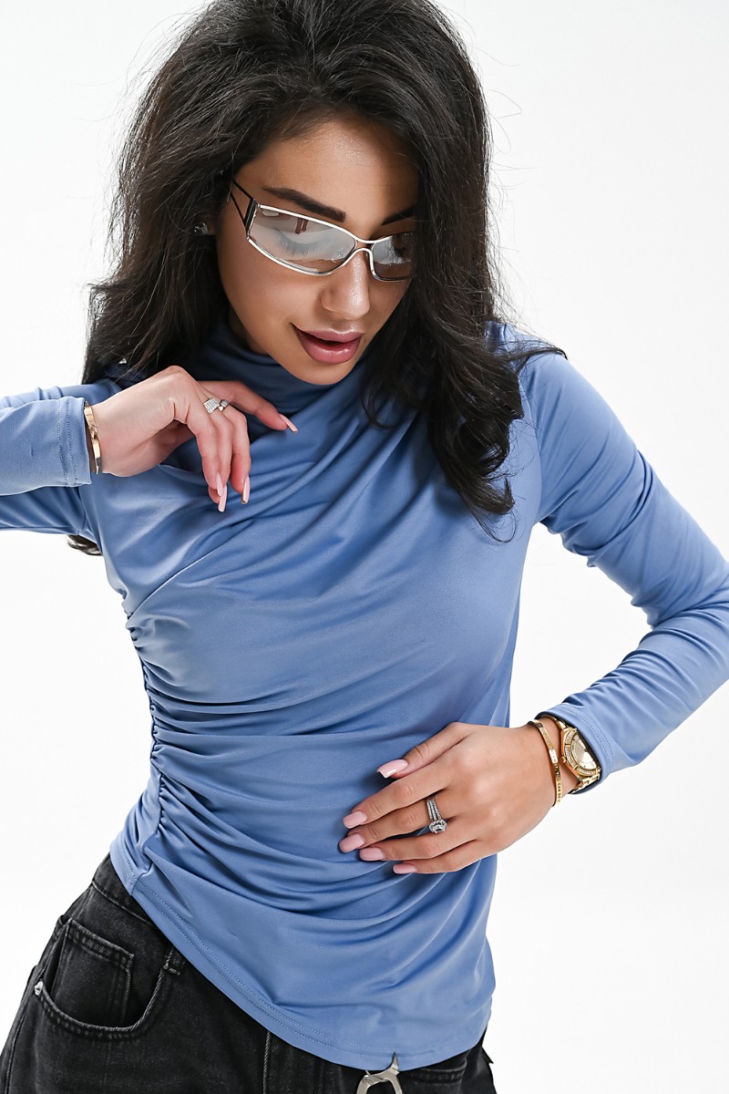 Представляем Вашему вниманию эффектный женский лонгслив с драпировкой. Полуприталенная модель сшита из эластичной стрейчевой ткани, которая будет красиво подчёркивать фигуру. Хорошо сочетается с любым низом.