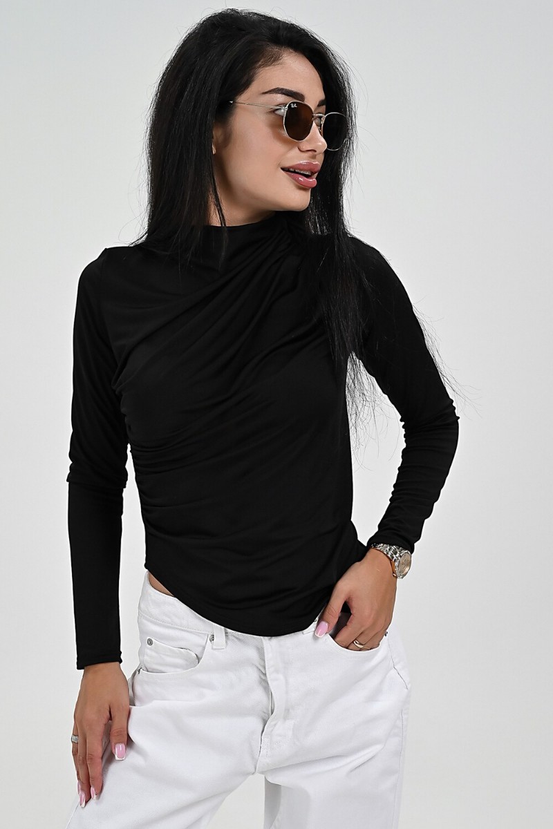 Представляем Вашему вниманию эффектный женский лонгслив с драпировкой. Полуприталенная модель сшита из эластичной стрейчевой ткани, которая будет красиво подчёркивать фигуру. Хорошо сочетается с любым низом.