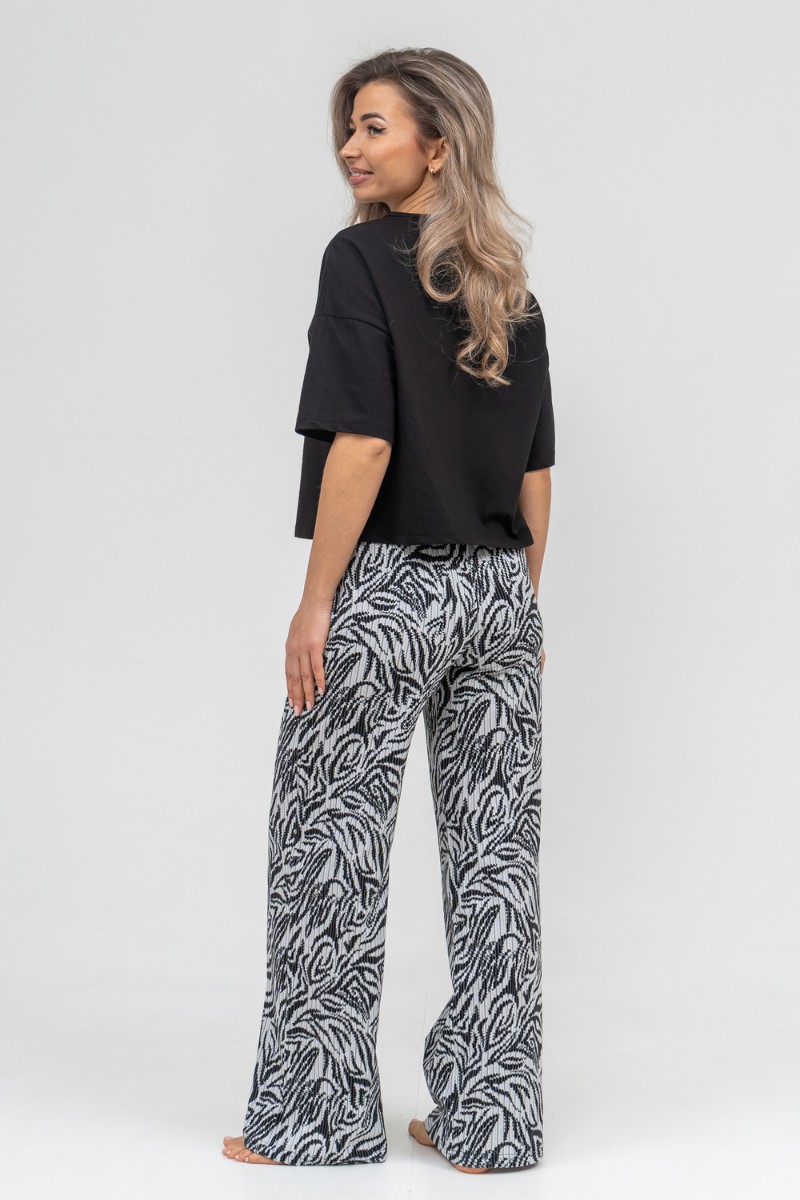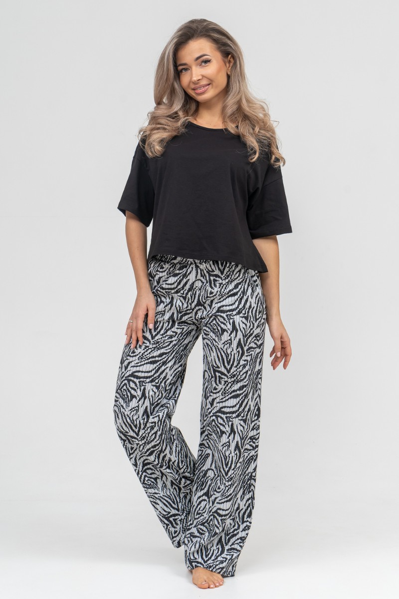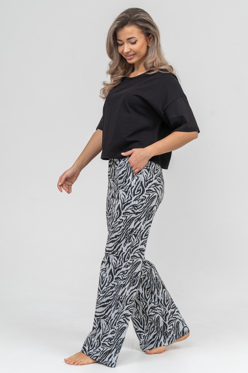 Представляем Вашему вниманию модный стильный костюм - идеальное решение для тех, кто ищет лёгкую и красивую одежду на каждый день для дома и отдыха. Костюм, футболка и брюки, выполнен из 100% хлопка. Футболка выполнена со спущенным рукавом и окантованной горловиной. На брюках имеется два вместительных боковых кармана и пояс, обработанный на специализированной поясной машине. Данная модель костюма очень удобна в качестве повседневной одежды, а универсальный фасон хорошо скроет недостатки и подчеркнет достоинства фигуры. Свободный крой комплекта "двойки" не сковывает движения, что делает его очень удобным в носке, резинка не перекручивается, а высокая посадка брюк - палаццо даёт ощущение комфорта. Такой костюм можно использовать как вариант домашнего костюма, в нем также можно поехать на дачу или отдых. Свободную футболку и брючки можно носить как вместе, так и отдельно. Футболку с коротким рукавом можно легко сочетать с джинсами, юбками и шортами. Хлопковый материал можно стирать в режиме бережной стирки при 30 градусах. Такой костюм с широкими брюками подойдет для разной возрастной категории. Он идеально подойдет для беременных и мам с детьми. Хорошо сядет на высоких и невысоких представительницах прекрасного пола всех возрастов. Такой универсальный женский костюм станет отличным подарочным вариантом, его можно подарить маме, дочери, жене, бабушке, подруге или порадовать себя любимую даже без повода. Наш костюм благодаря своей практичности и лаконичному дизайну будет служить Вам долгие годы.