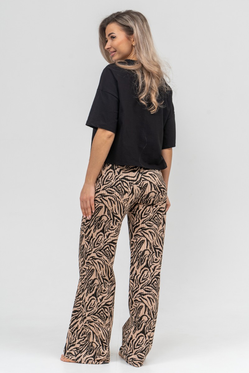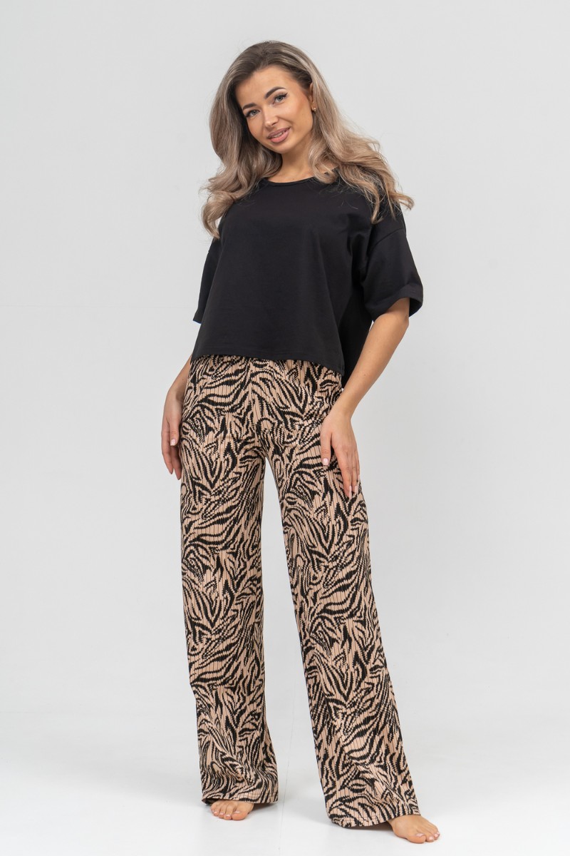 Представляем Вашему вниманию модный стильный костюм - идеальное решение для тех, кто ищет лёгкую и красивую одежду на каждый день для дома и отдыха. Костюм, футболка и брюки, выполнен из 100% хлопка. Футболка выполнена со спущенным рукавом и окантованной горловиной. На брюках имеется два вместительных боковых кармана и пояс, обработанный на специализированной поясной машине. Данная модель костюма очень удобна в качестве повседневной одежды, а универсальный фасон хорошо скроет недостатки и подчеркнет достоинства фигуры. Свободный крой комплекта "двойки" не сковывает движения, что делает его очень удобным в носке, резинка не перекручивается, а высокая посадка брюк - палаццо даёт ощущение комфорта. Такой костюм можно использовать как вариант домашнего костюма, в нем также можно поехать на дачу или отдых. Свободную футболку и брючки можно носить как вместе, так и отдельно. Футболку с коротким рукавом можно легко сочетать с джинсами, юбками и шортами. Хлопковый материал можно стирать в режиме бережной стирки при 30 градусах. Такой костюм с широкими брюками подойдет для разной возрастной категории. Он идеально подойдет для беременных и мам с детьми. Хорошо сядет на высоких и невысоких представительницах прекрасного пола всех возрастов. Такой универсальный женский костюм станет отличным подарочным вариантом, его можно подарить маме, дочери, жене, бабушке, подруге или порадовать себя любимую даже без повода. Наш костюм благодаря своей практичности и лаконичному дизайну будет служить Вам долгие годы.