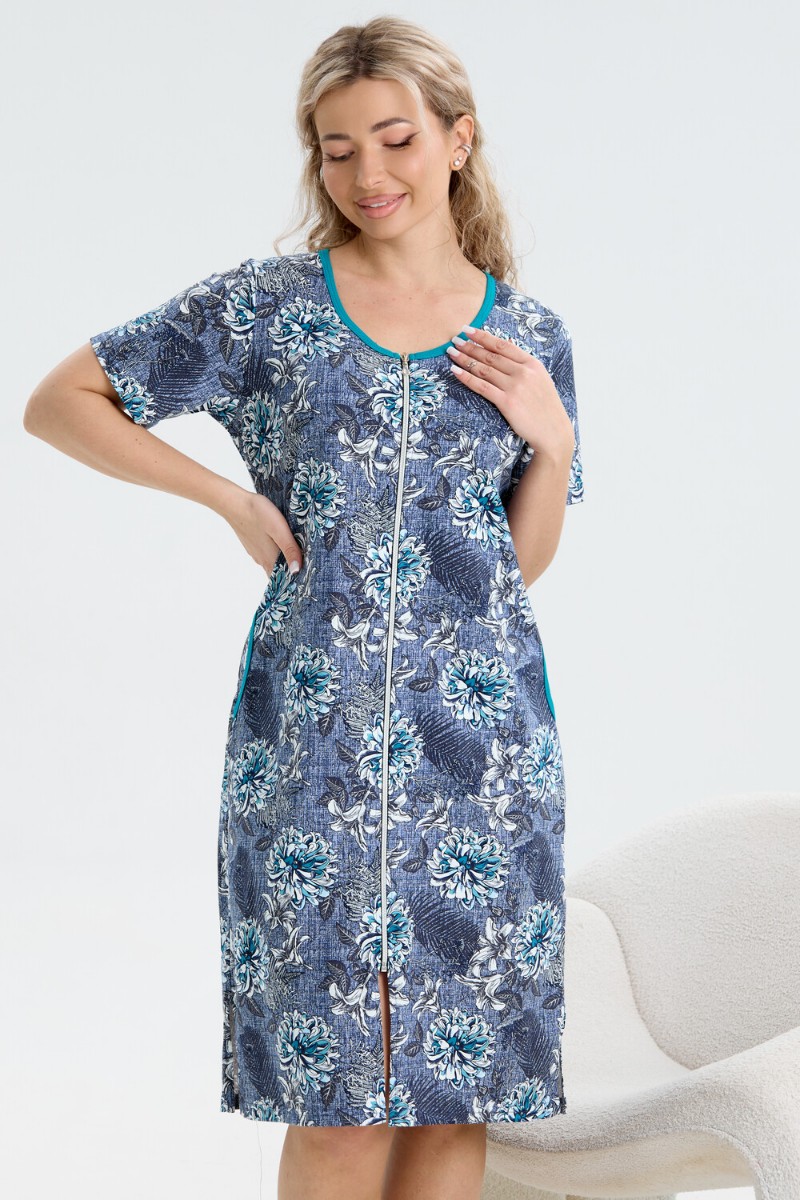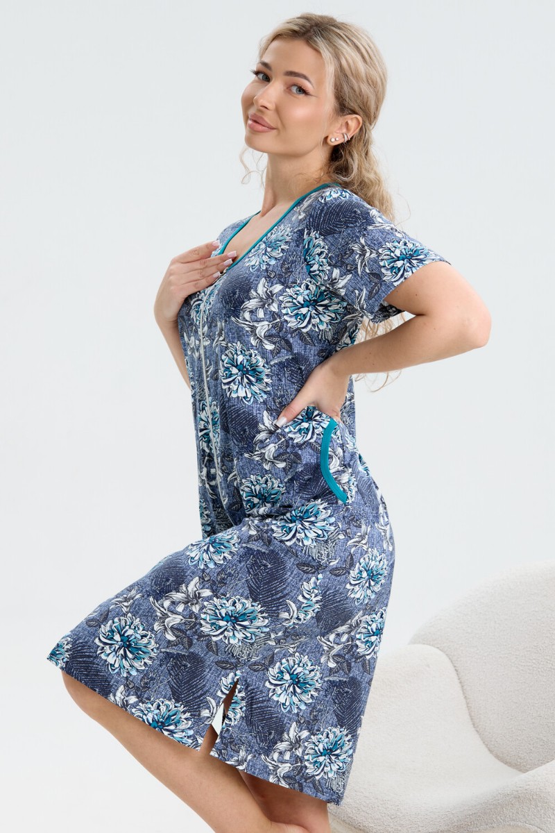 Халат женский №37002 кулирка (р-ры: 48-56) синий