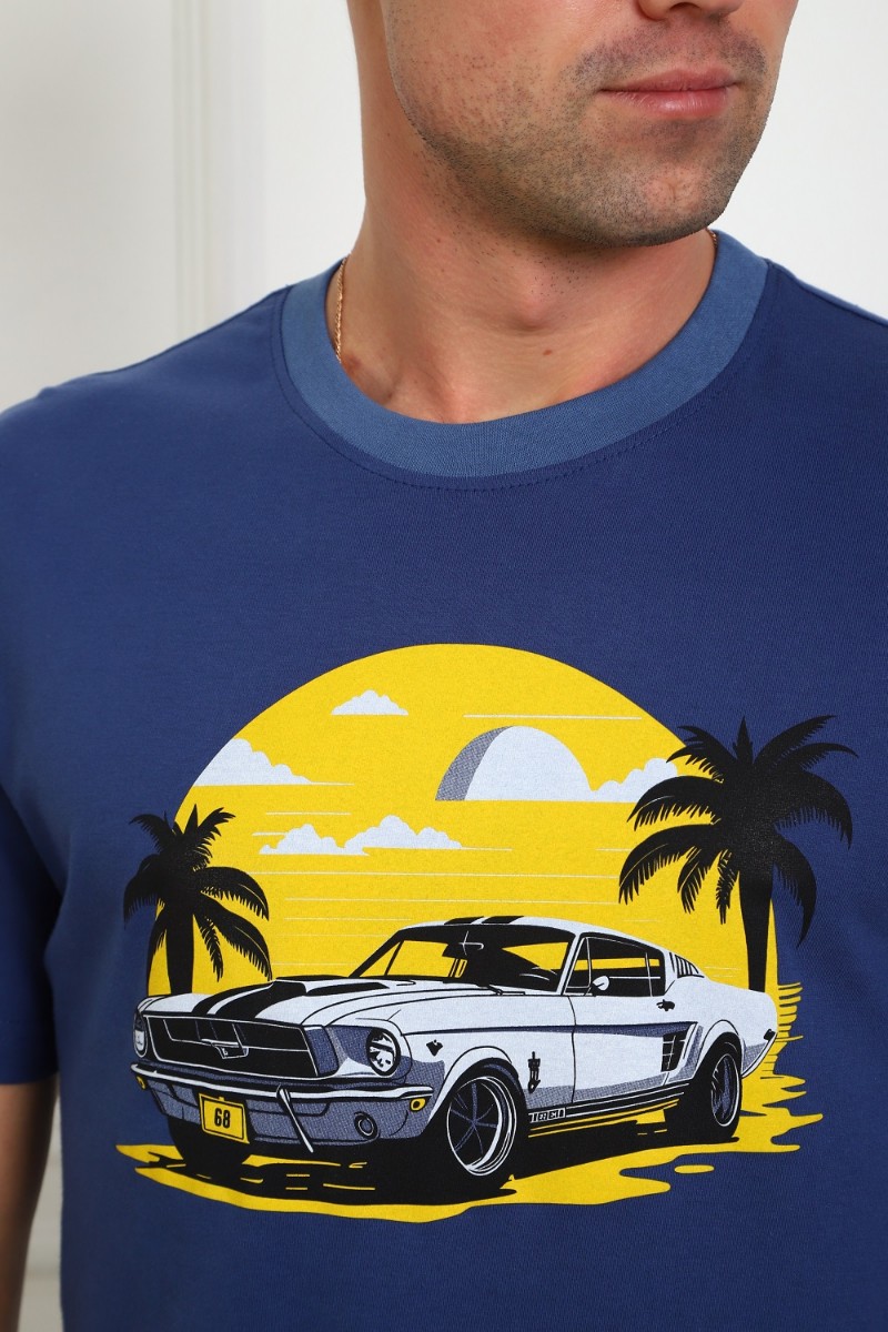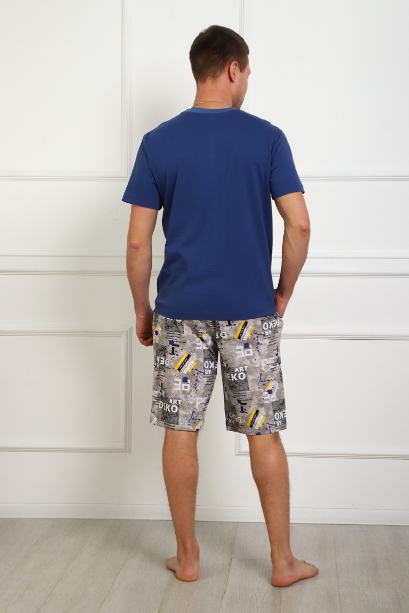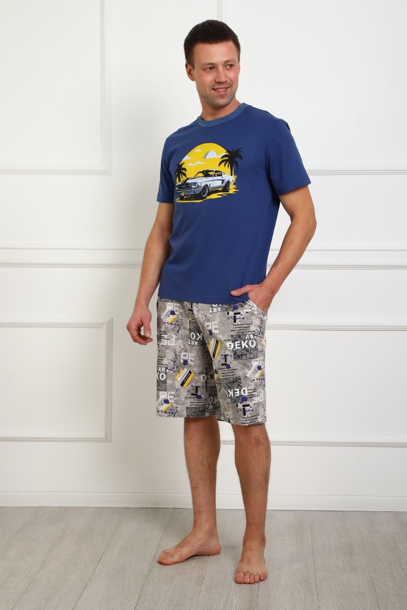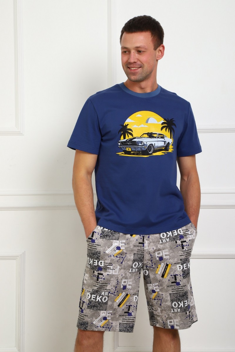 Представляем Вашему вниманию легкий мужской костюм двойку - футболка с атмосферным принтом на груди, с короткими рукавами и шорты на эластичном поясе, с боковыми карманами. Комфорт 100% хлопка.