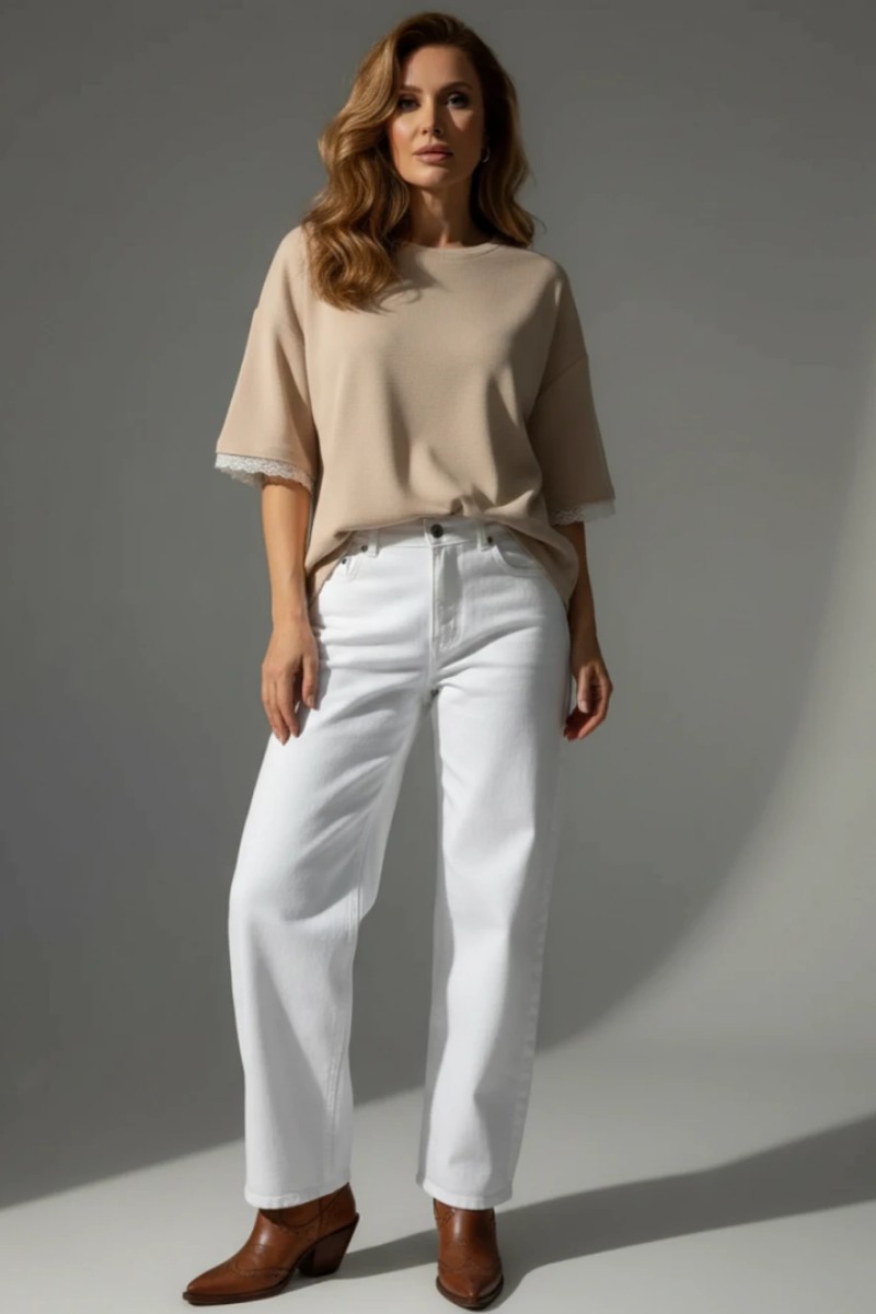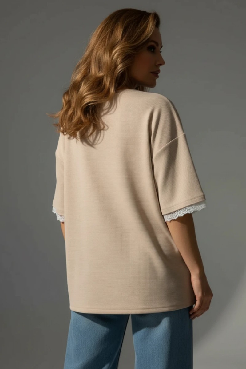Представляем Вашему вниманию стильную женскую футболку - безупречный баланс грубоватой фактуры и нежной романтики. Романс — это футболка-настроение, которая соединяет в себе уютную расслабленность оверсайз кроя и изысканную женственность кружева. Текстурная основа — трикотаж «вафля». Магия этой модели начинается с материала. Вафельный трикотаж — это не просто ткань, это тактильный опыт. Его объёмная структура создаёт эффект лёгкой воздушности, приятно сохраняет прохладу и добавляет образу тот самый «слоёный» casual-шик. Он выглядит сложно и дорого, оставаясь при этом невероятно комфортным. Контраст, который создаёт характер. Крой: Классический, свободный оверсайз со спущенным плечом. Он скрывает недостатки, дарит полную свободу движений и создаёт модный непринуждённый силуэт. Акцент: Изысканное кружево, обрамляющее низ короткого рукава. Эта деликатная деталь — главная интрига модели. Она смягчает грубоватую фактуру, добавляет намёк на романтику и превращает простую футболку в предмет с историей. Почему она станет любимой: Идеальная фактура: «Вафля» — тренд, который не выходит из моды. Она добавляет образу объёма и стиля даже в самом простом сочетании. Умная детализация: Кружево на рукаве — это намного изящнее и современнее, чем стандартная отделка. Акцент смещён, делая образ интереснее. Сезонный трансформер: Идеальна для жаркого лета с шортами, для прохладного вечера с джинсами и для создания многослойных образов весной и осенью. Романс — это история о том, как лёгкая небрежность встречается с тонкой элегантностью. Футболка, которая говорит о вашем вкусе шёпотом, но её слышат все.