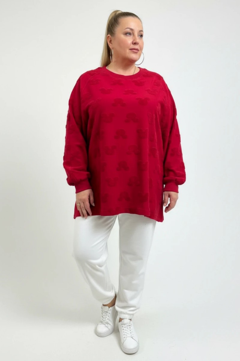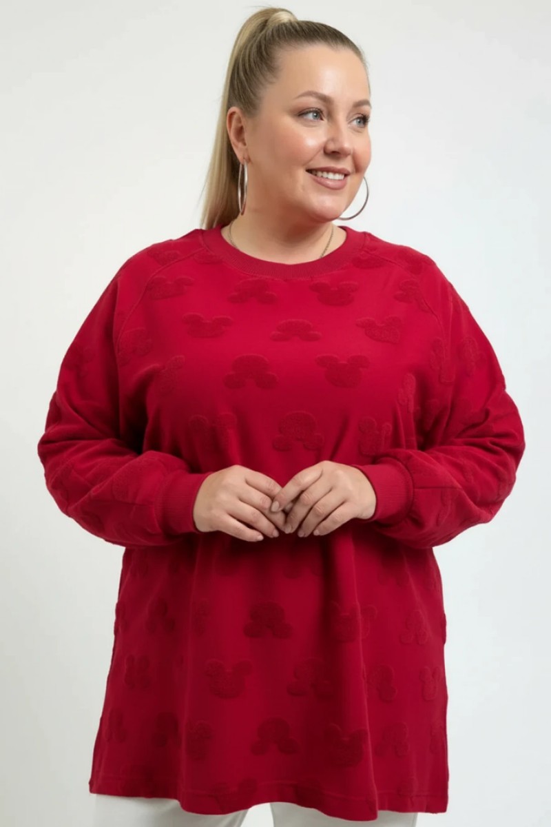 Свитшот женский "Ребека" махра жаккард (р-ры: 44-66) махра Микки бордо