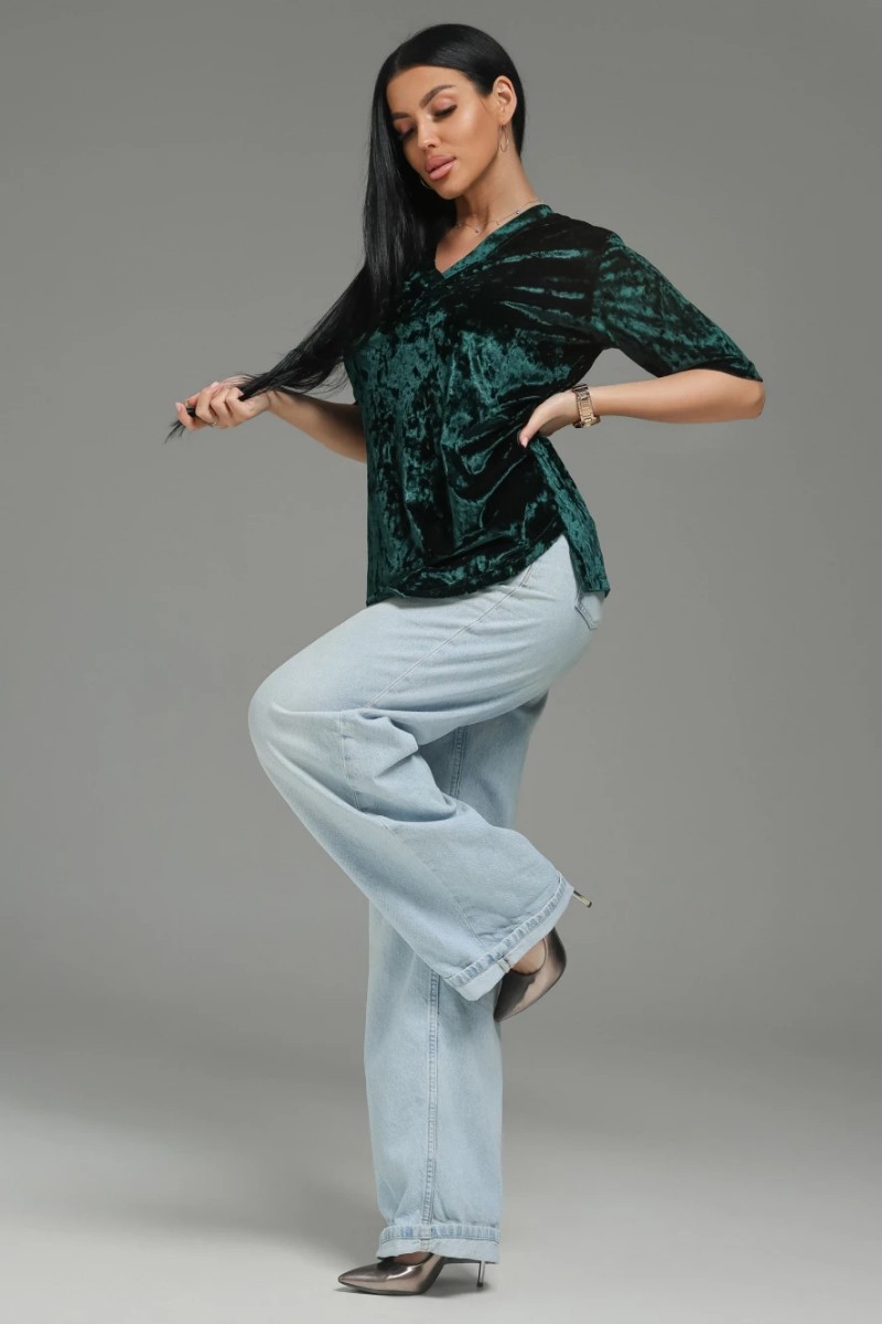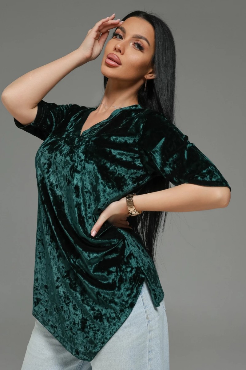 Футболка женская "Мия" бархат (р-ры: 48-62) изумруд