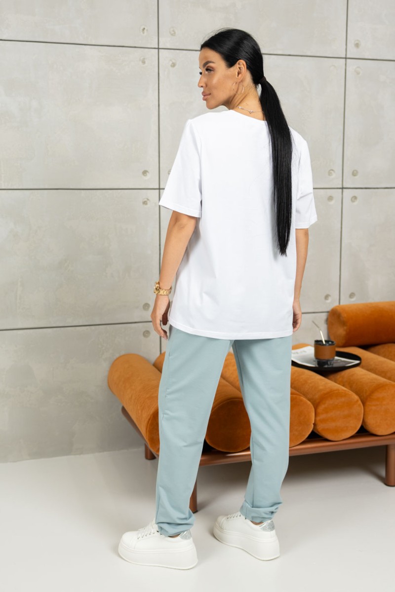 Костюм двойка женский 2064/1 кулирка-футер (последний размер) белый-ментол 48,50