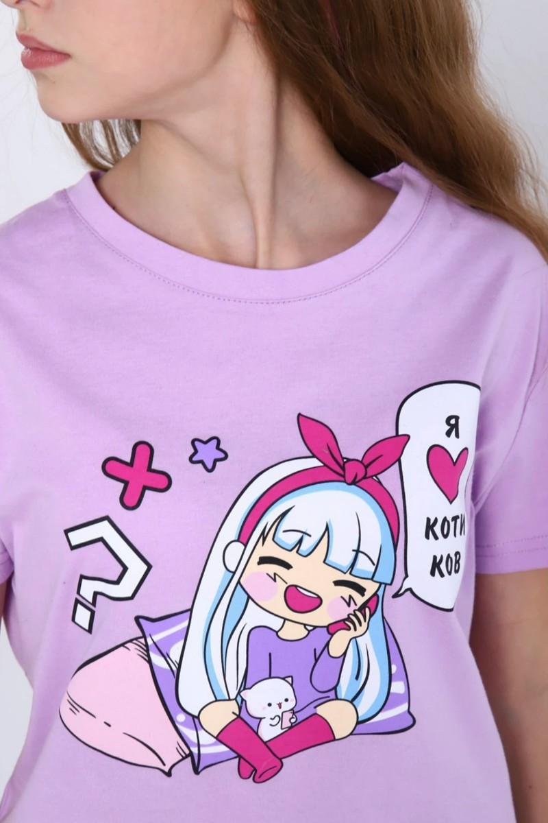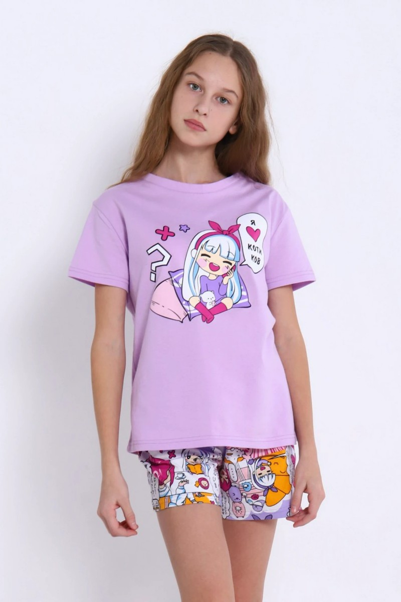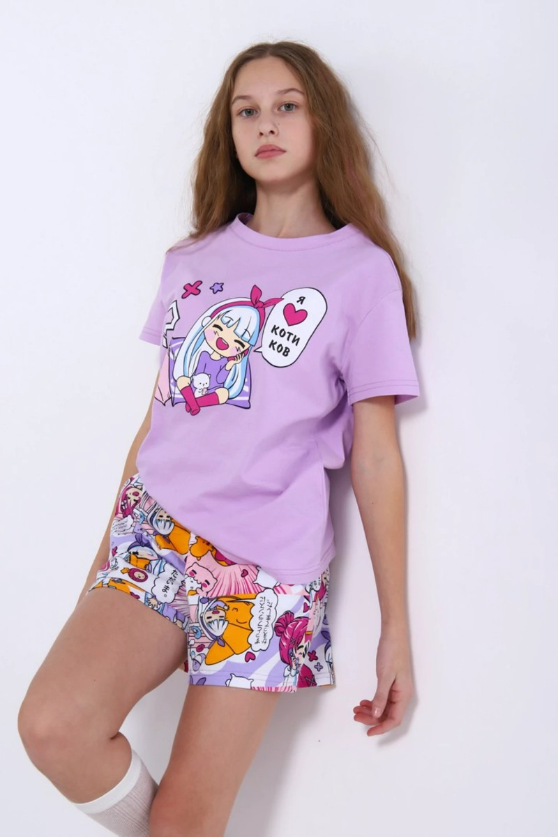 Представляем Вашему вниманию яркий детский костюм двойку для дома из коллекции аниме. Стильный комплект для девочек включает футболку и шортики с красивым принтом. Костюм сшит из натурального хлопкового трикотажа.