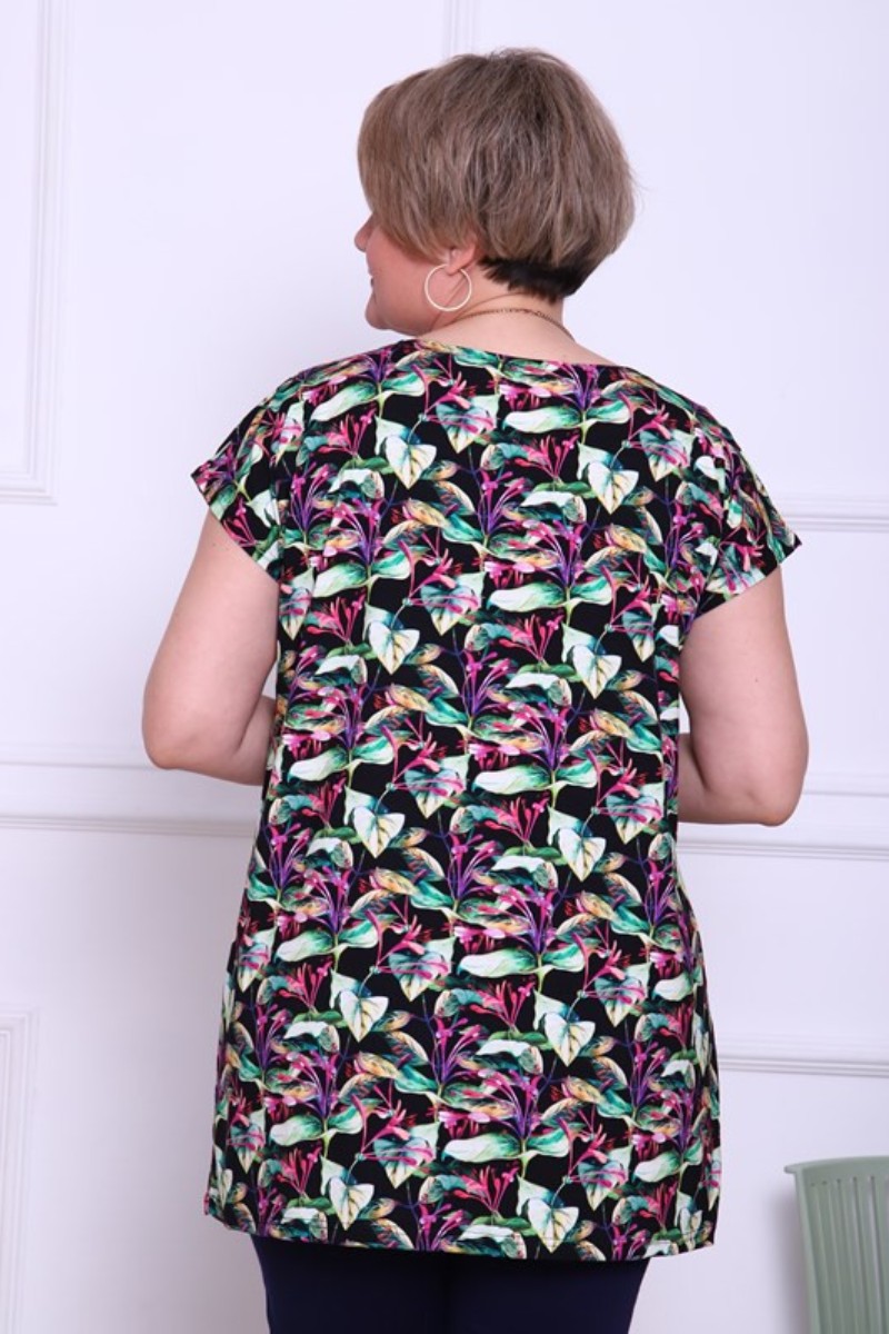 Туника женская "Канди К-3" вискоза (последний размер) цветы на черном 60