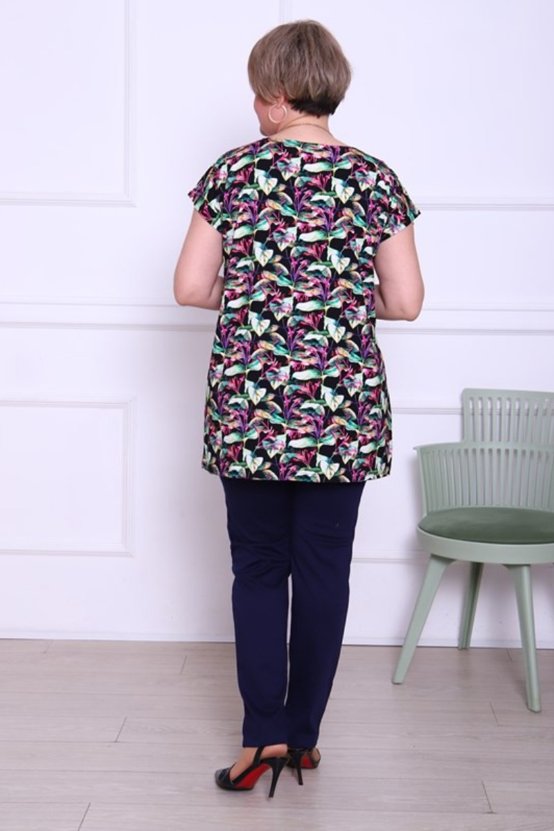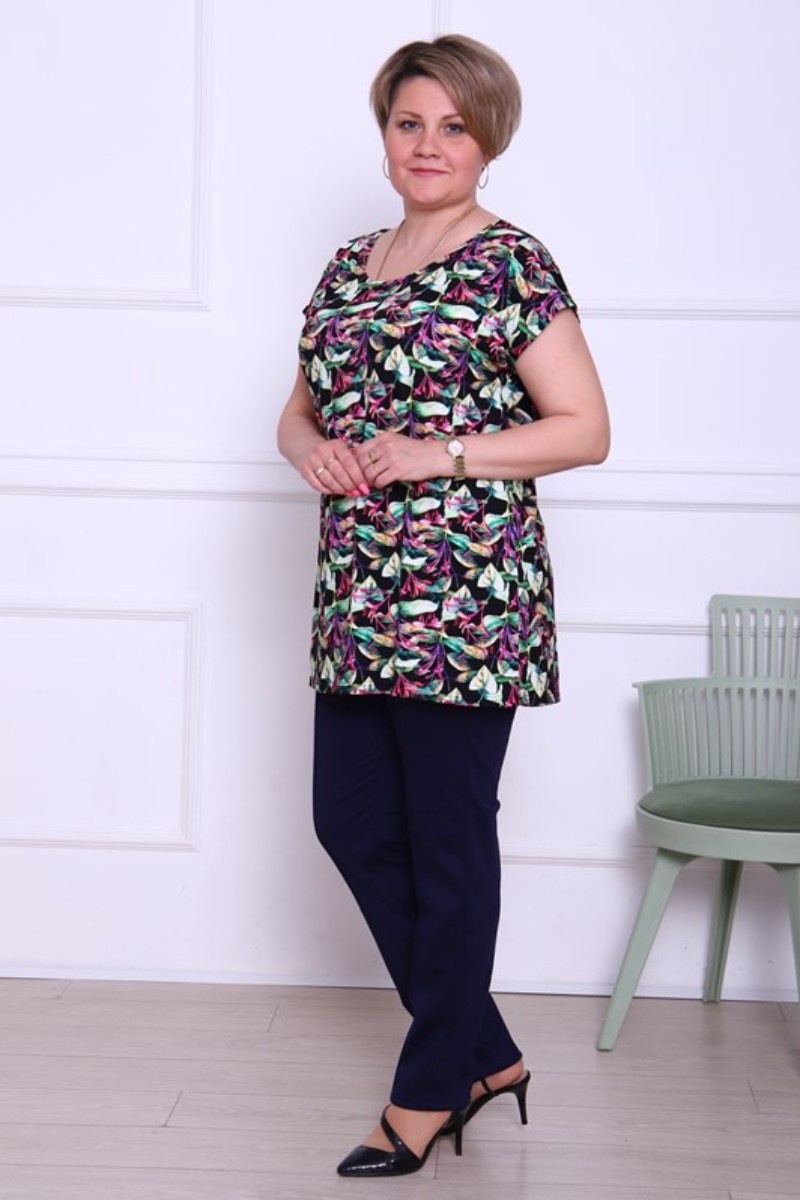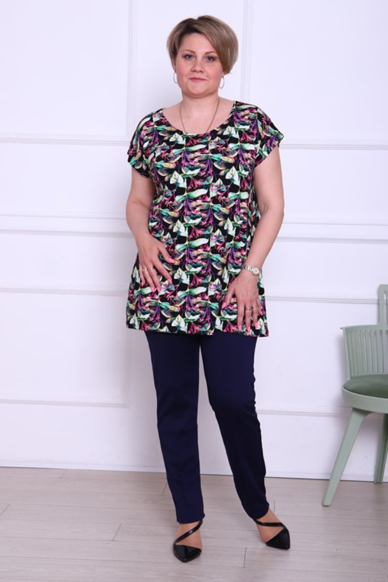 Представляем Вашему вниманию легкую женскую тунику, сшитую из высококачественной вискозы. Модель имеет интересную расцветку, которая красиво смотрится и поднимает настроение. Изделие хорошо сидит на фигуре и подчеркивает её достоинства. В ней Вы будете чувствовать себя комфортно и уверенно.