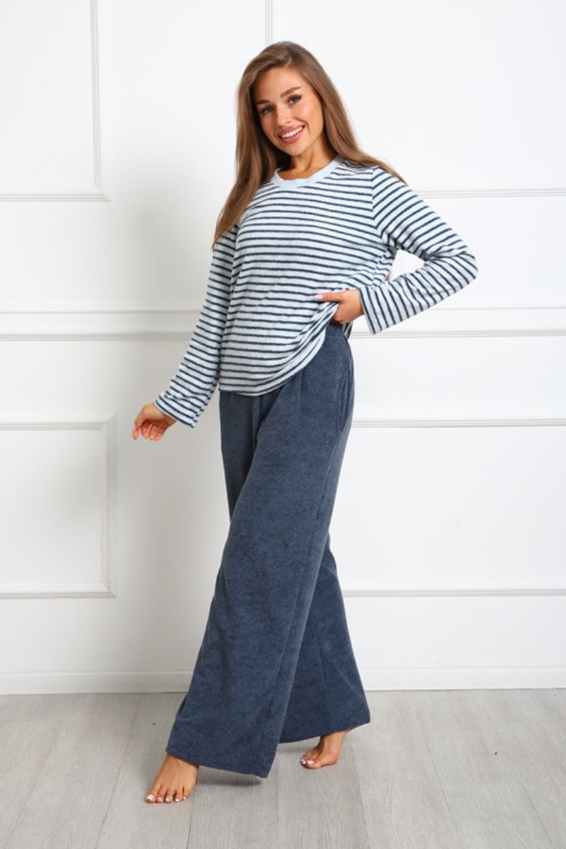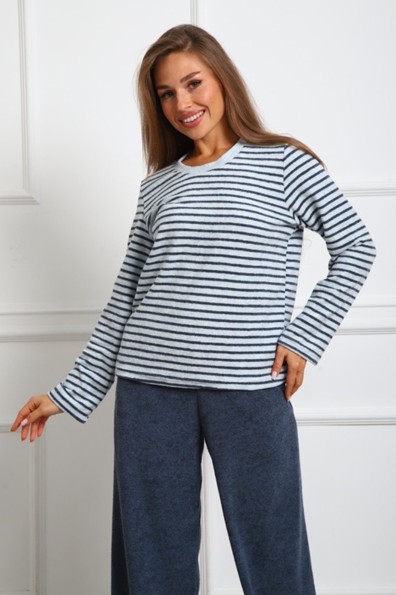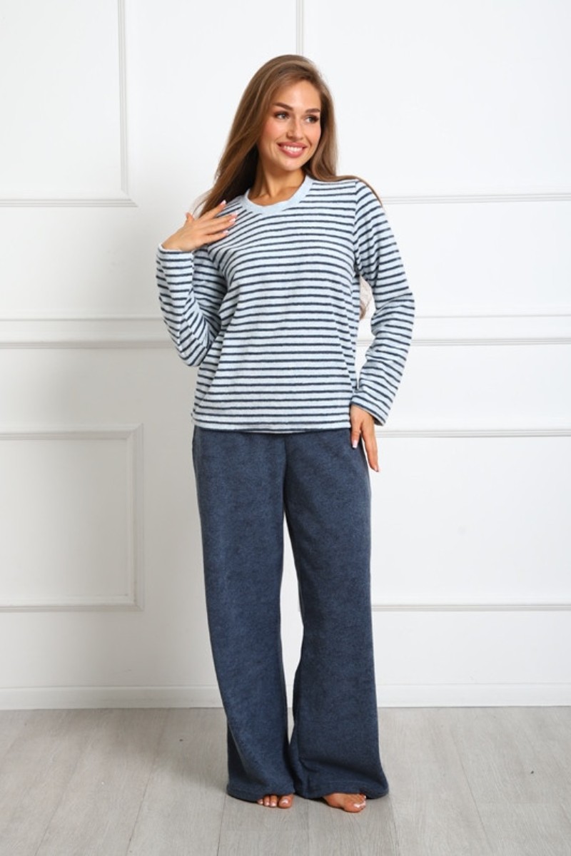 Костюм двойка женский "Крис ПС" махра (последний размер) полоса синяя 58