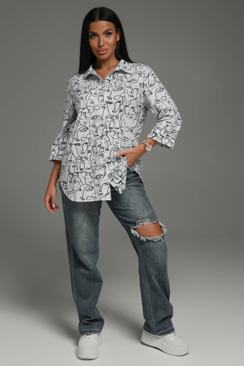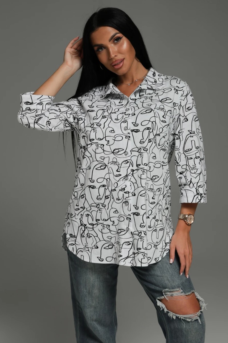 Представляем Вашему вниманию изящную женскую тунику свободного кроя, дополненную рукавами 3/4 и застежкой на пуговицы. Очаровательная модель сшита из высококачественной, приятной телу кулирки - 100% натуральный хлопок, отлично пропускающий воздух, за счет чего кожа может дышать.