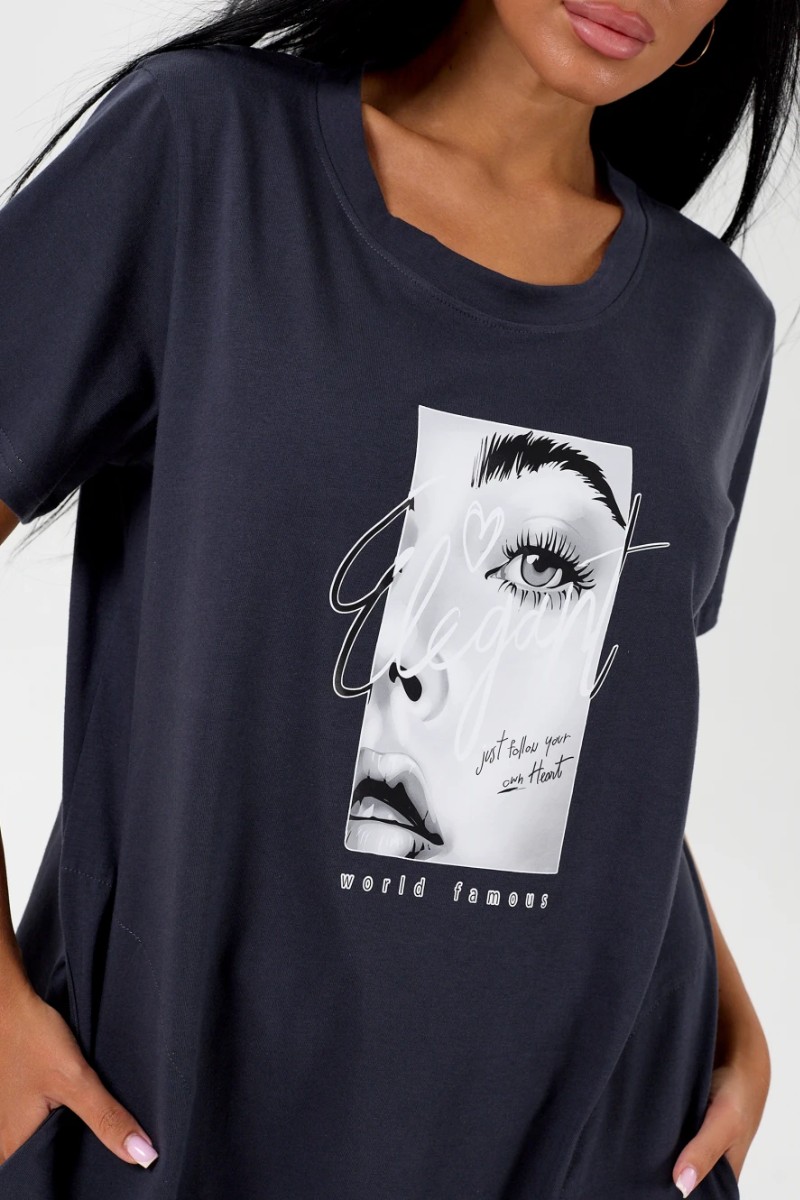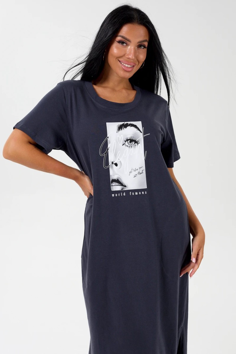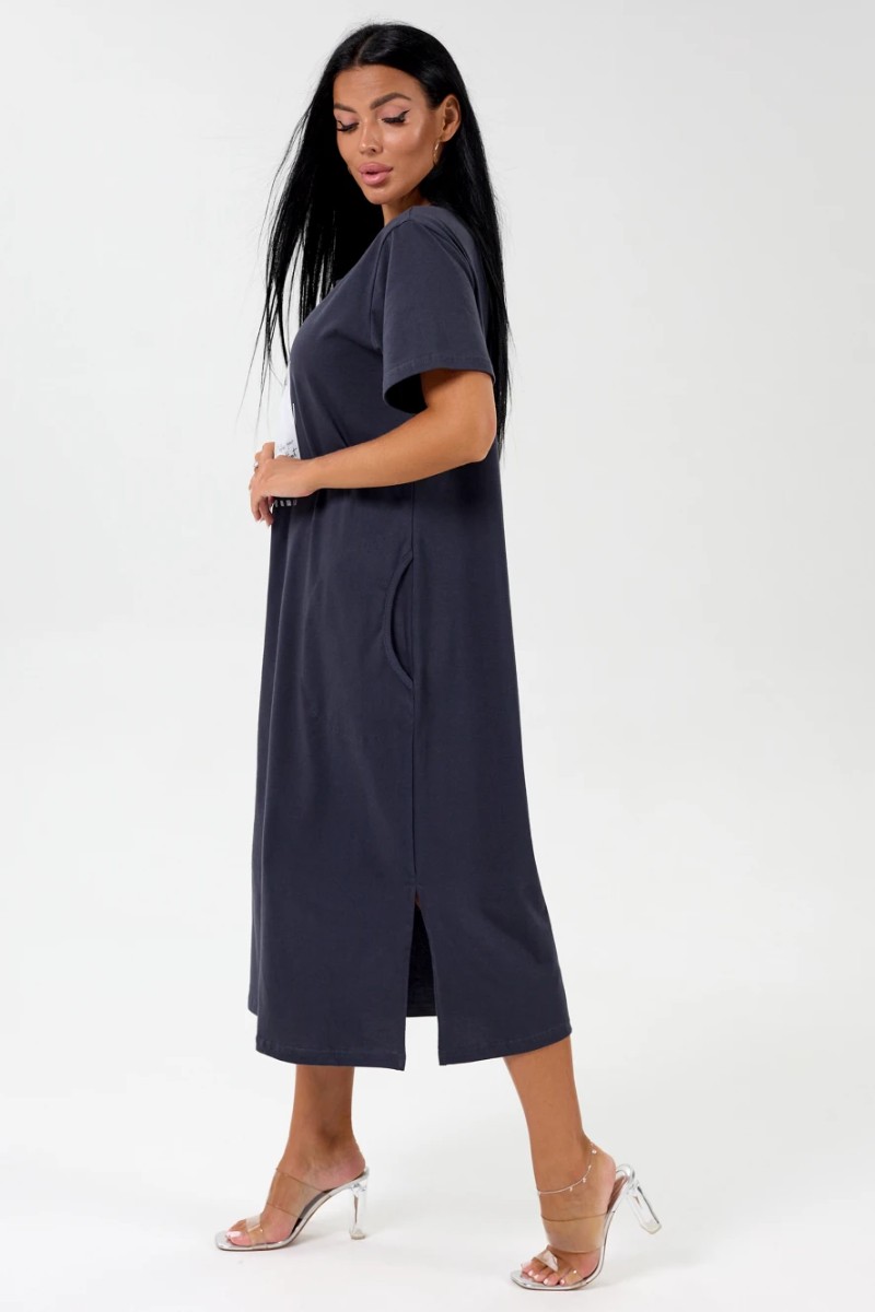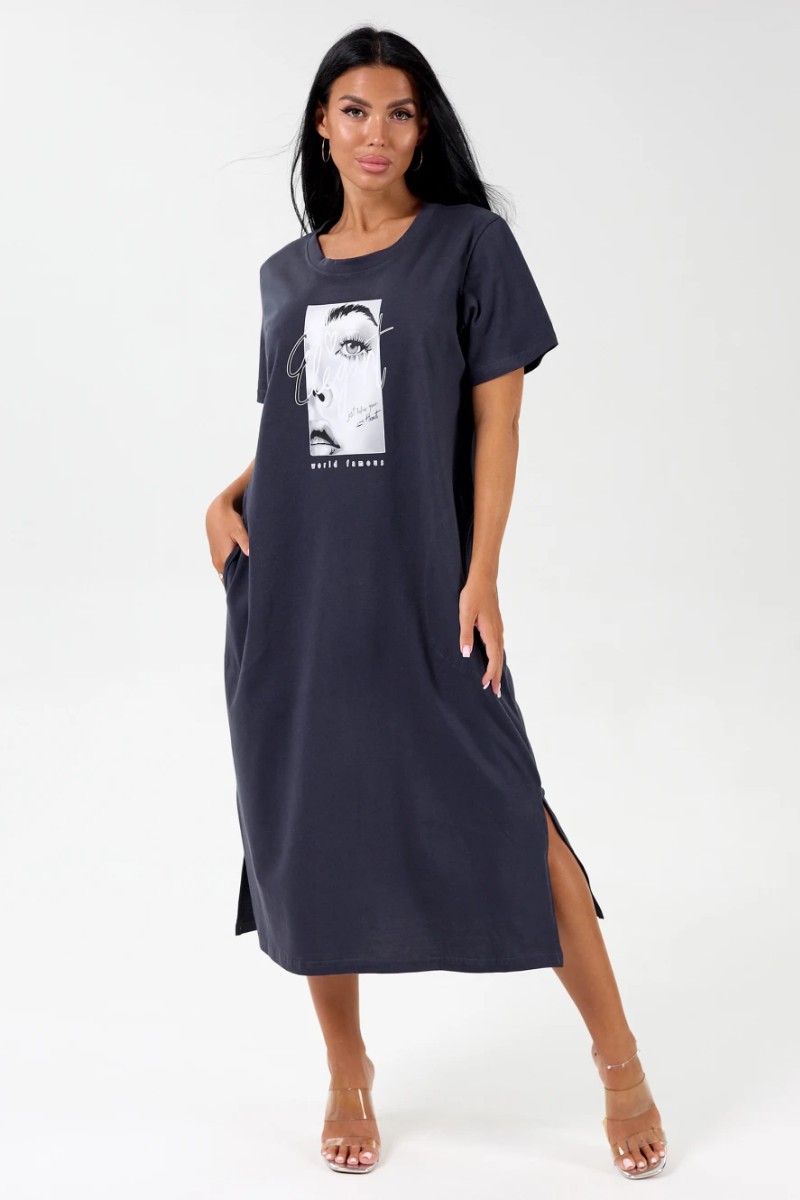 Представляем Вашему вниманию удлиненное платье свободного кроя из хлопковой, мягкой ткани, с разрезами по бокам. На полочке имеется декоративный фотопринт, придающий изделию оригинальный вид. Карманы, в которые можно разместить разные мелочи, придадут больше удобства. Платье идеально подойдет для женщины с любым типом фигуры. Отличный вариант на каждый день.