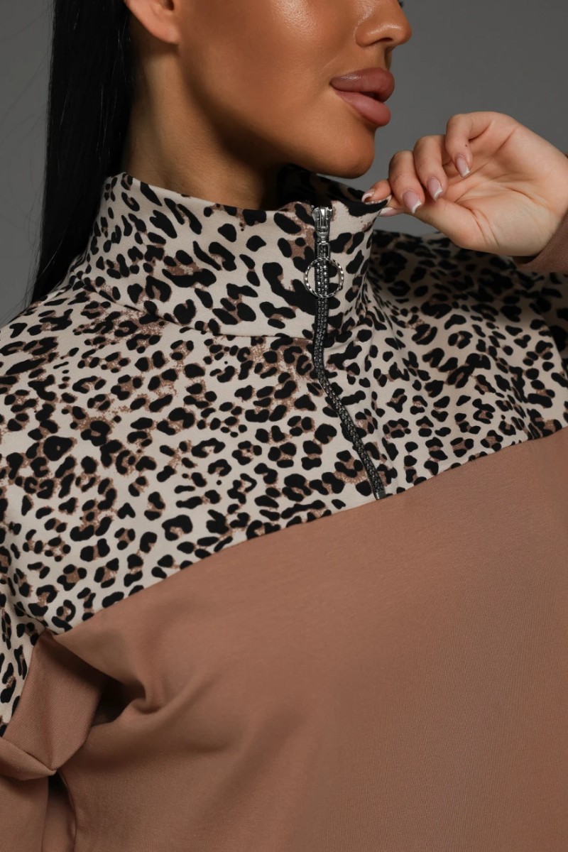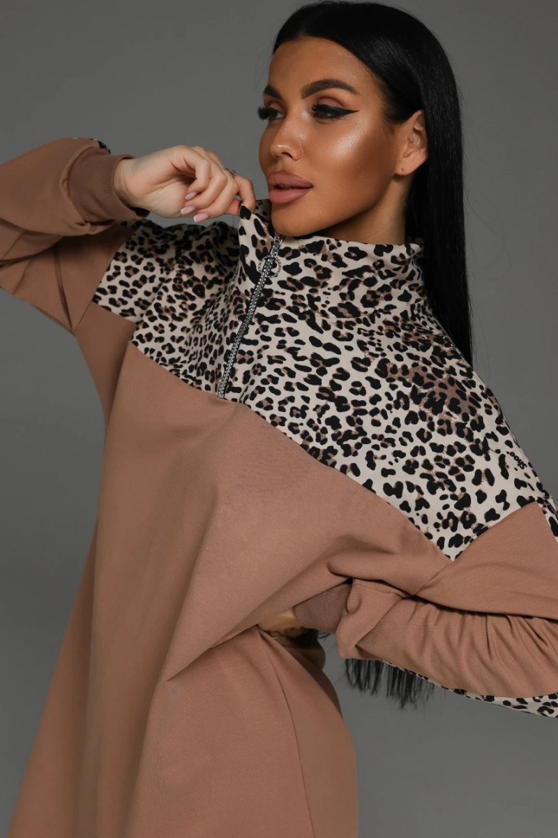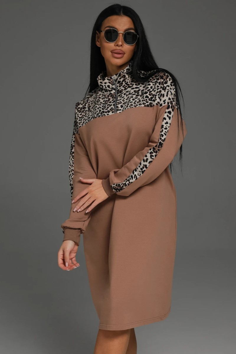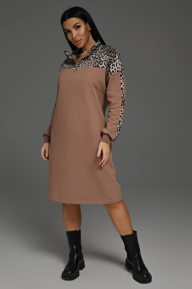 Платье женское "Синди" футер 2-х нитка с лайкрой (последний размер) кофе леопард 56,58