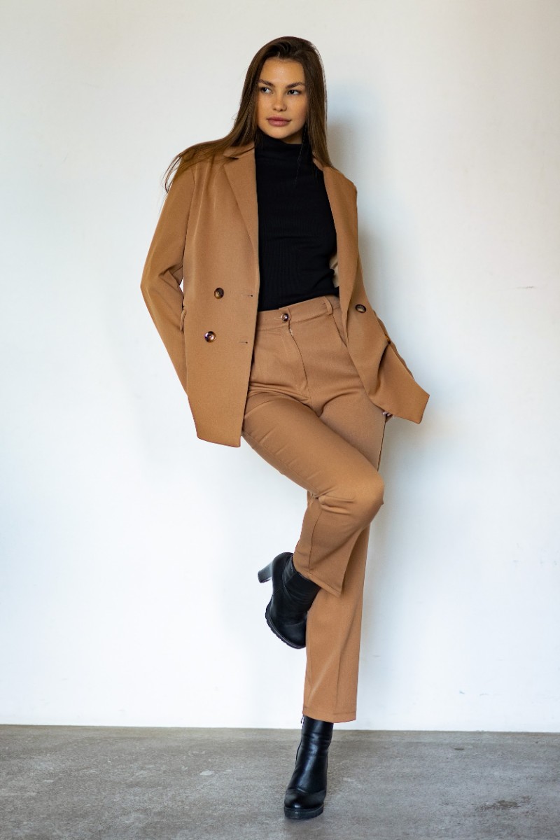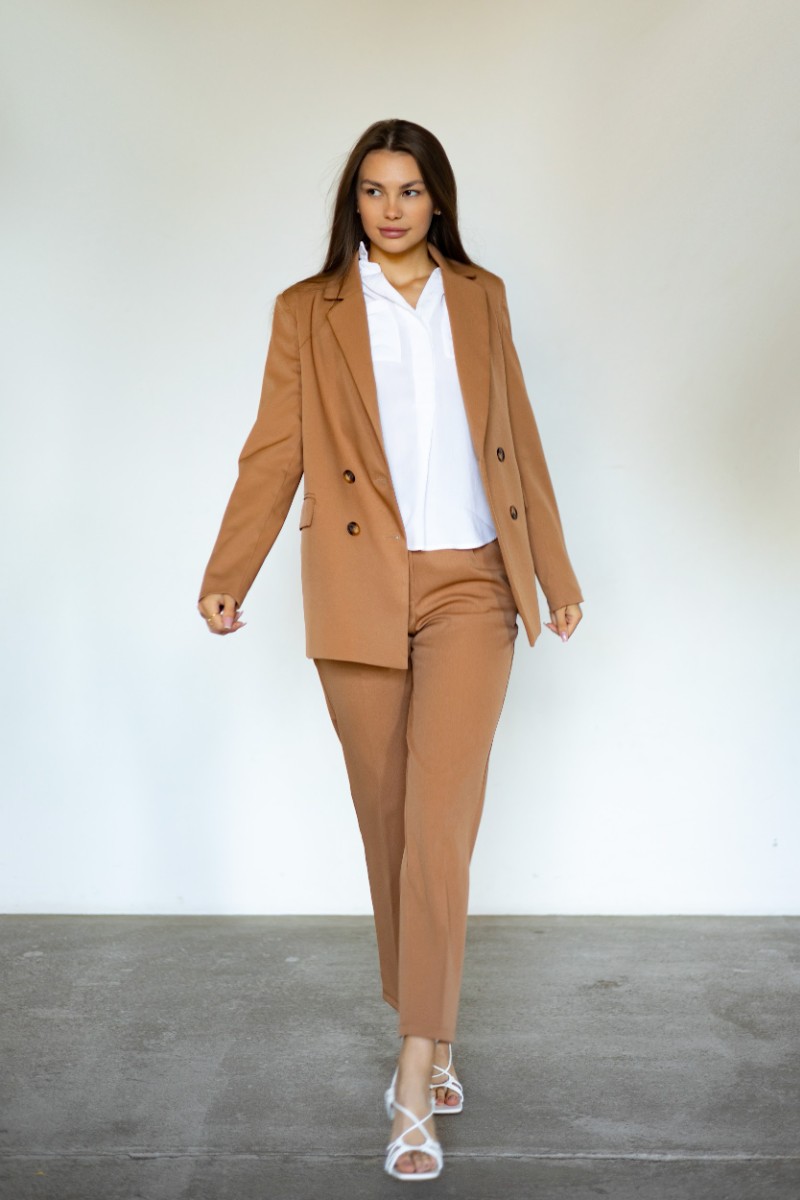 Представляем Вашему вниманию женский деловой брючный костюм - это идеальный выбор для Вашего гардероба. Классический костюм, выполненный из легких и приятных к телу материалов, обеспечит комфорт и будет отлично смотреться на любой женщине. Костюм представлен в разных размерах, включая большие, чтобы каждая женщина могла выбрать подходящую для себя двойку. Брючные штаны станут отличным вариантом как для офисного, так и для праздничного наряда. Классический дизайн костюма делает его универсальным и подходящим для различных мероприятий - от вечернего выхода до деловой встречи, а так же как школьная форма для подростка. Наличие подклада у пиджака порадует вас и в теплое и в холодное время. Будь то зима, весна, осень или лето. Не упустите возможность приобрести женский деловой брючный костюм с большим выбором размеров и ощутить комфорт в носке качественной и стильной одежды! Классическая ОВЕРСАЙЗ одежда на каждый день. Широкий размерный ряд от 40 до 56, подробнее на 3м фото в карусели. Посадка правильной длины и кроя с мягким подкладом и подплечниками. Классика и отличный элегантный подарок на день рождения маме, жене, девушке, сестре. Отлично дополнит весенний или осенний наряд. Подойдет на любое мероприятие, на 8 марта, последний звонок или выпускной, 1е сентября или свадебная церемония. Много образов, офисный деловой и повседневный кэжуал стиль на прогулку, на работу, для подростков в школу. Модный клубный лук на вечеринку, на праздник, на особый случай и для подружек невесты на свадьбу. Комфортный плюс сайз жакет и прямые штаны порадуют вас и в теплое и в холодное время, будь то зима, весна, осень. Такой повседневный молодежный oversize фасон отлично подойдет на прогулочный вечер, корпоратив. Строгий костюм двойка это комплект с пиджаком с воротником и с брюками, модная и удобная одежда для женщин.