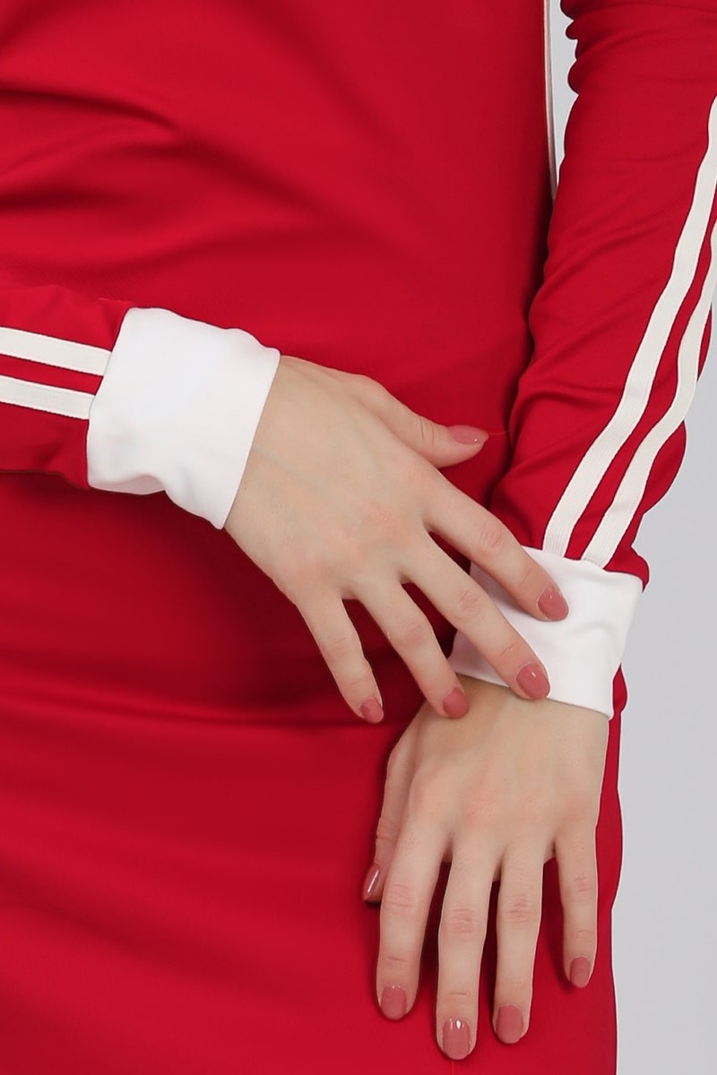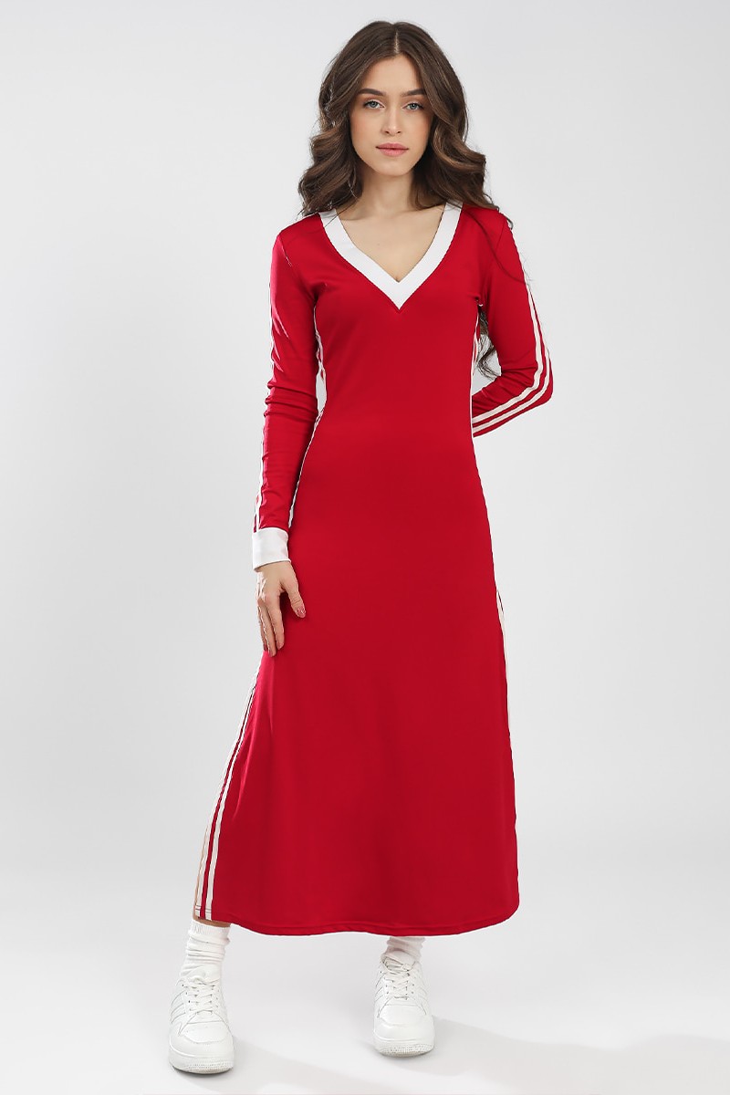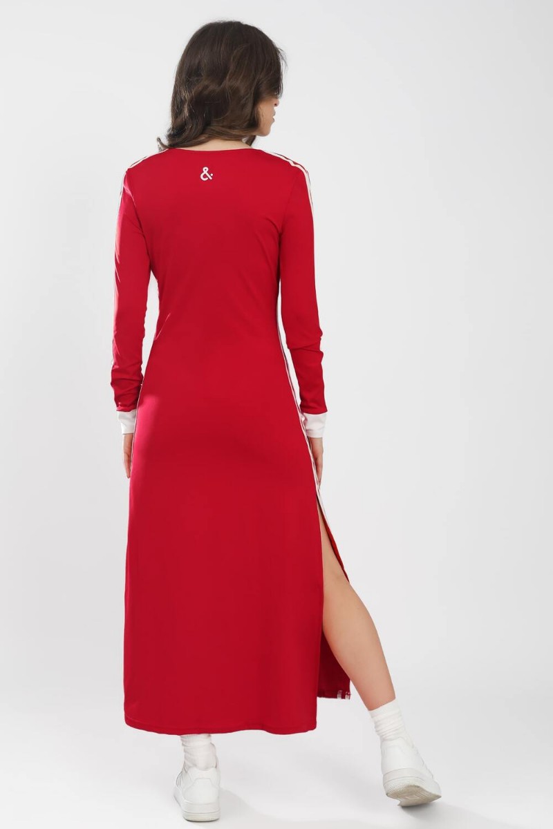 Представляем Вашему вниманию женское платье в стиле спорт-шик, полуприлегающего кроя, длинное, с V-образным вырезом. Платье с лампасами контрастного цвета вдоль рукава и боковых швов. В нижней части бокового шва обработан разрез. Платье выполнено из высококачественной ткани, которая обеспечивает отличную эластичность и комфорт при движении.