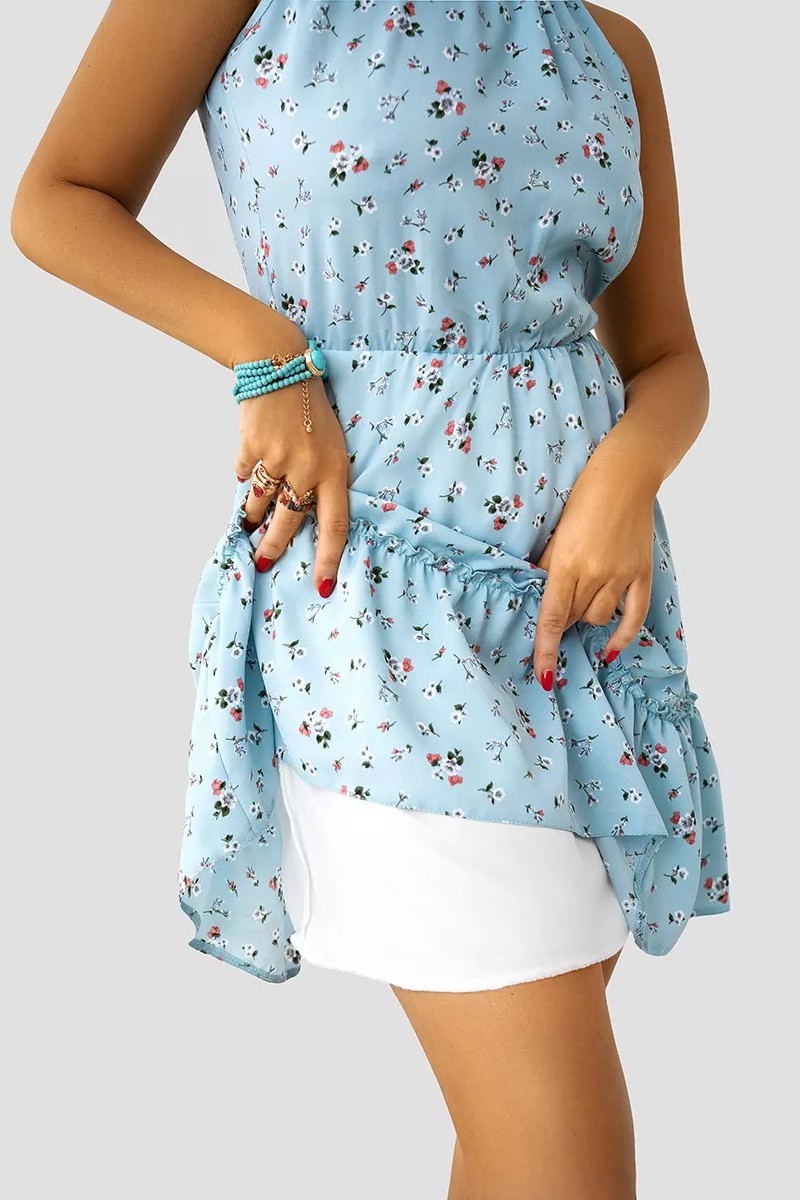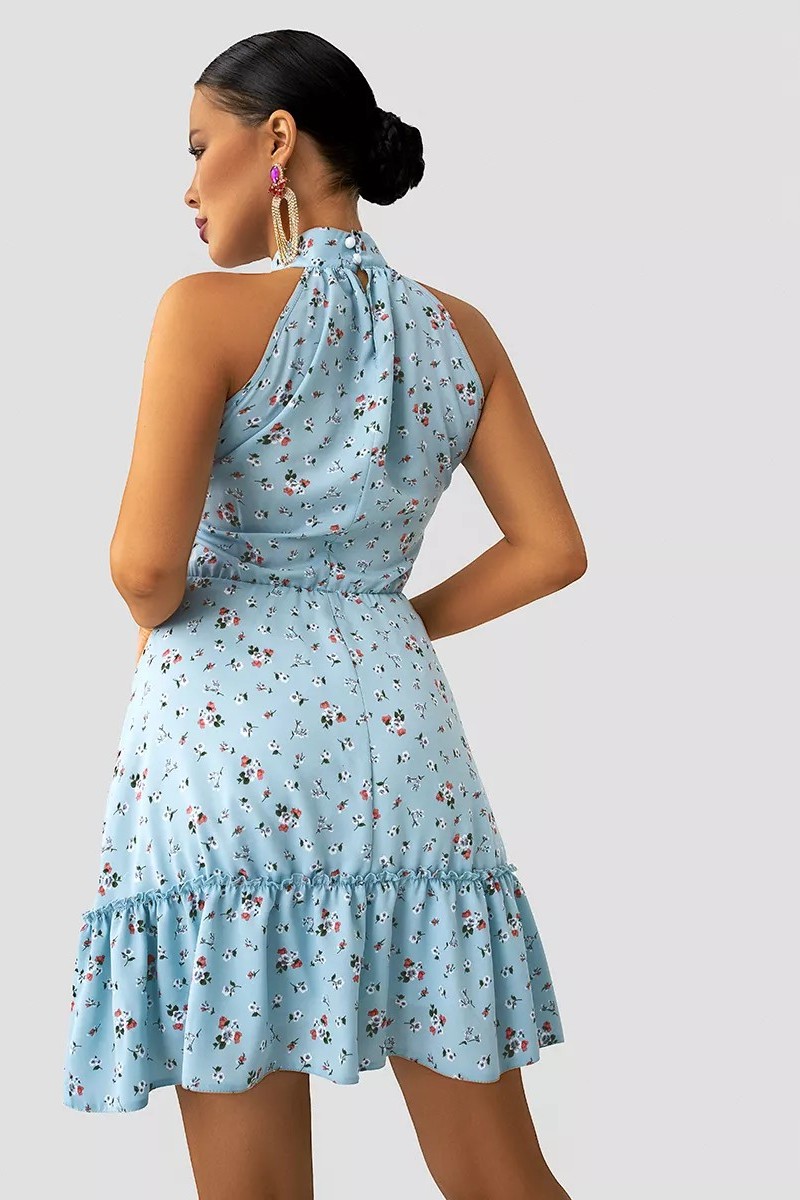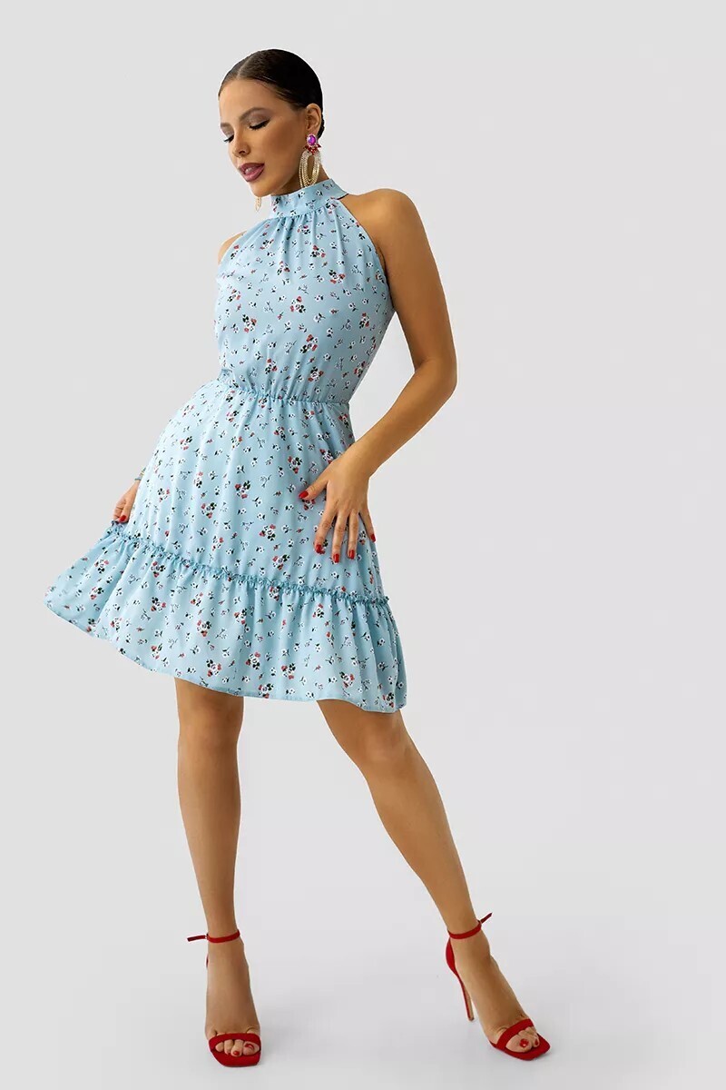 Представляем Вашему вниманию летнее женское мини-платье без рукавов. Модель выделяется открытыми плечами и горлом. Оно будет подчеркивать вашу женственность и неотразимость.