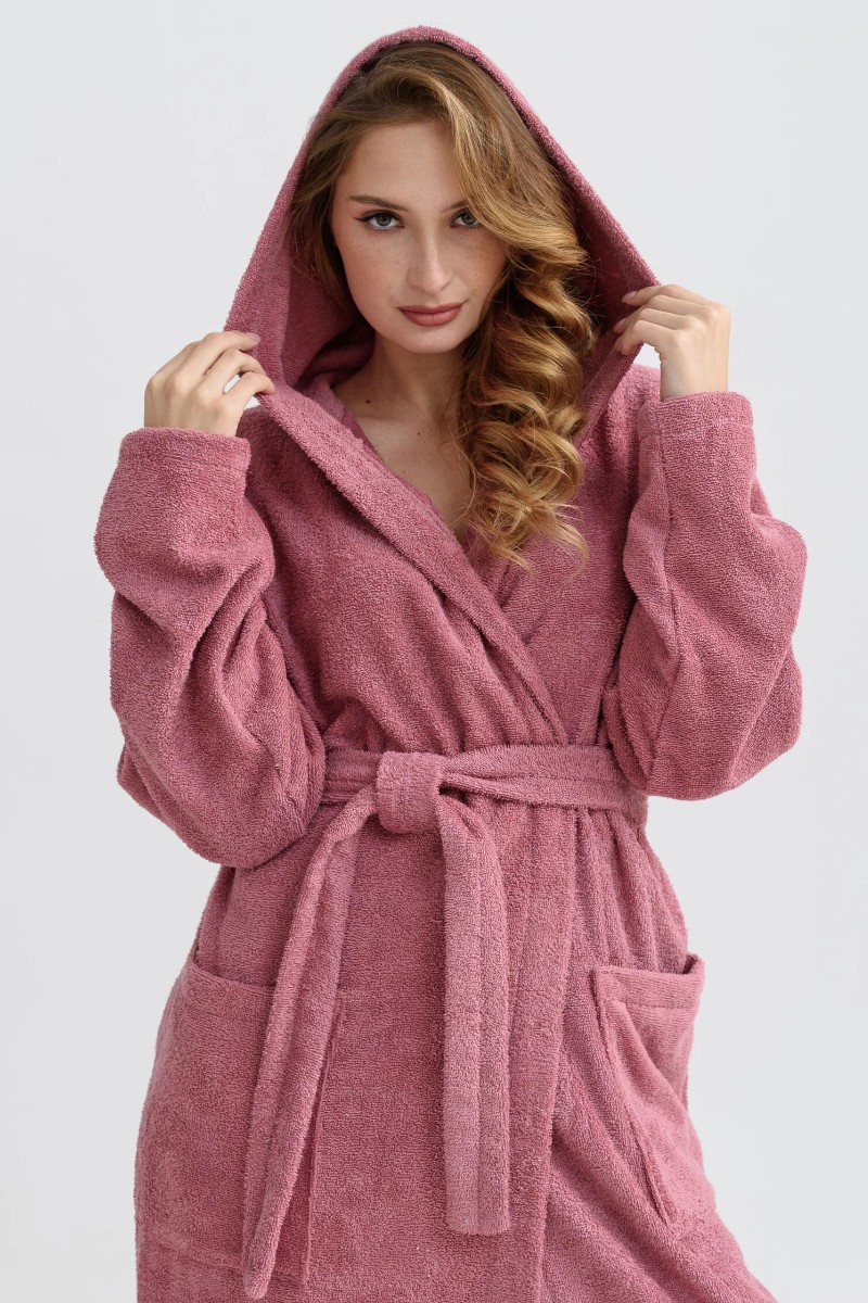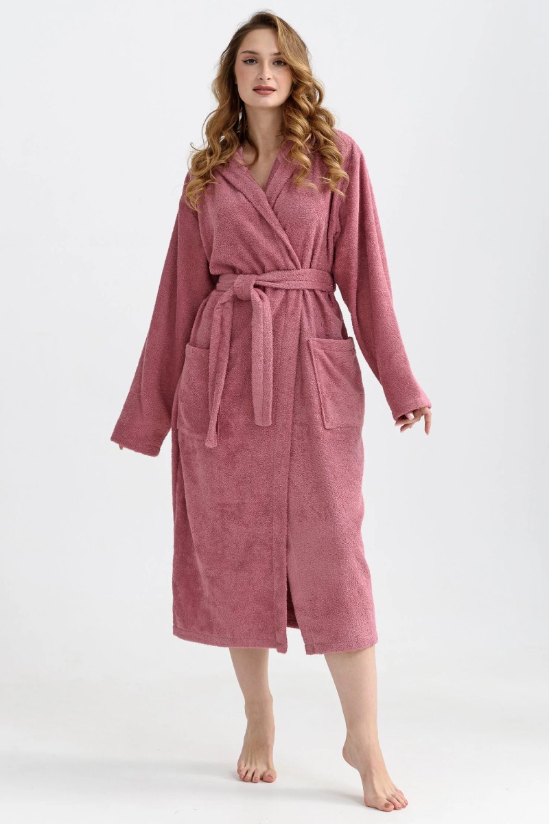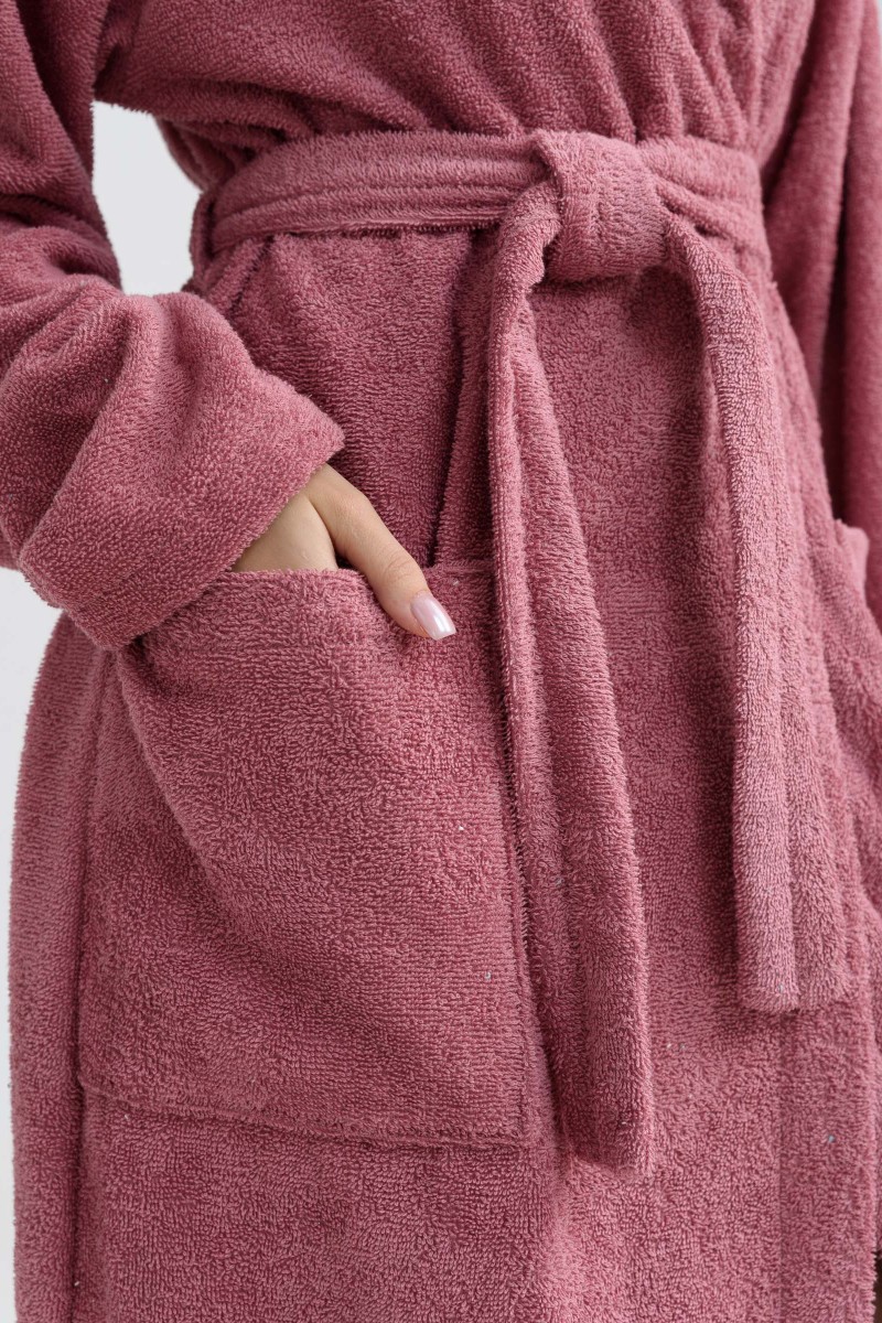Халат женский 2272-М "Банный" махра (последний размер) сухая роза 58