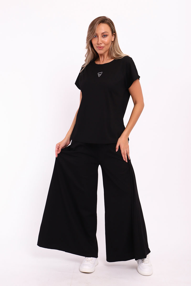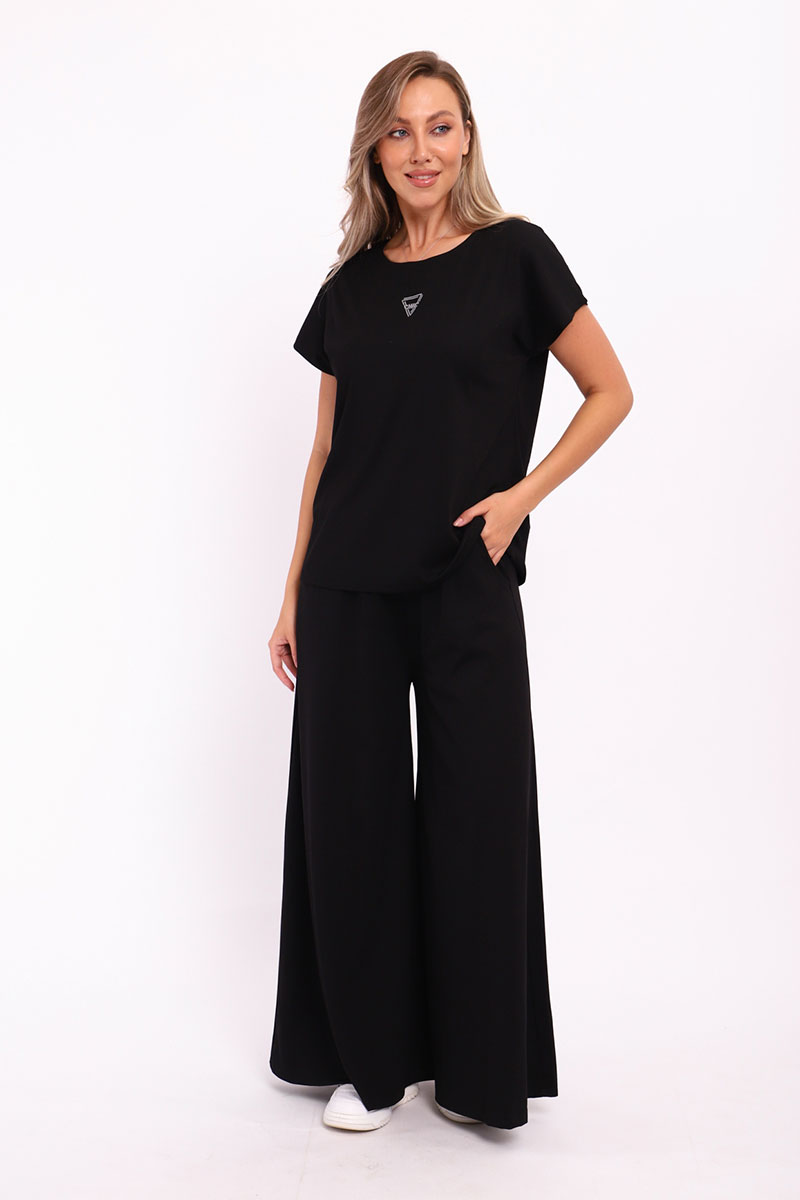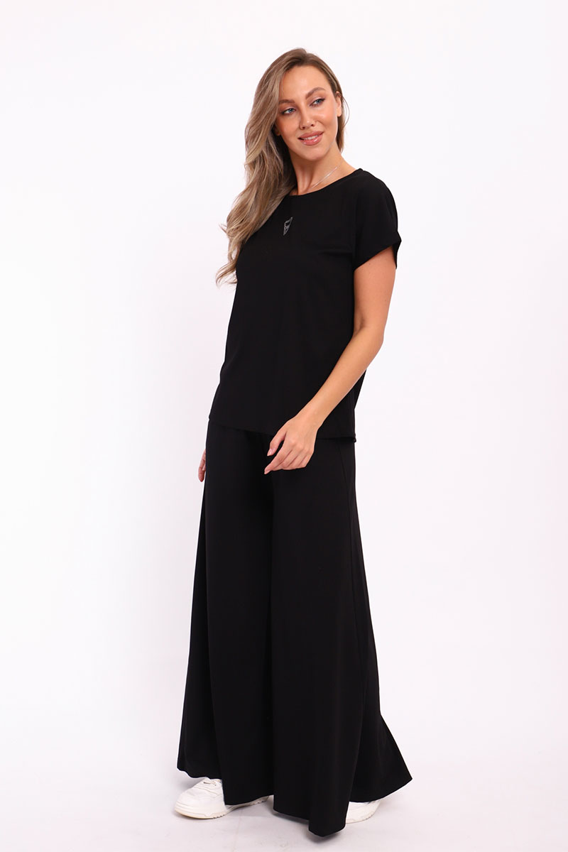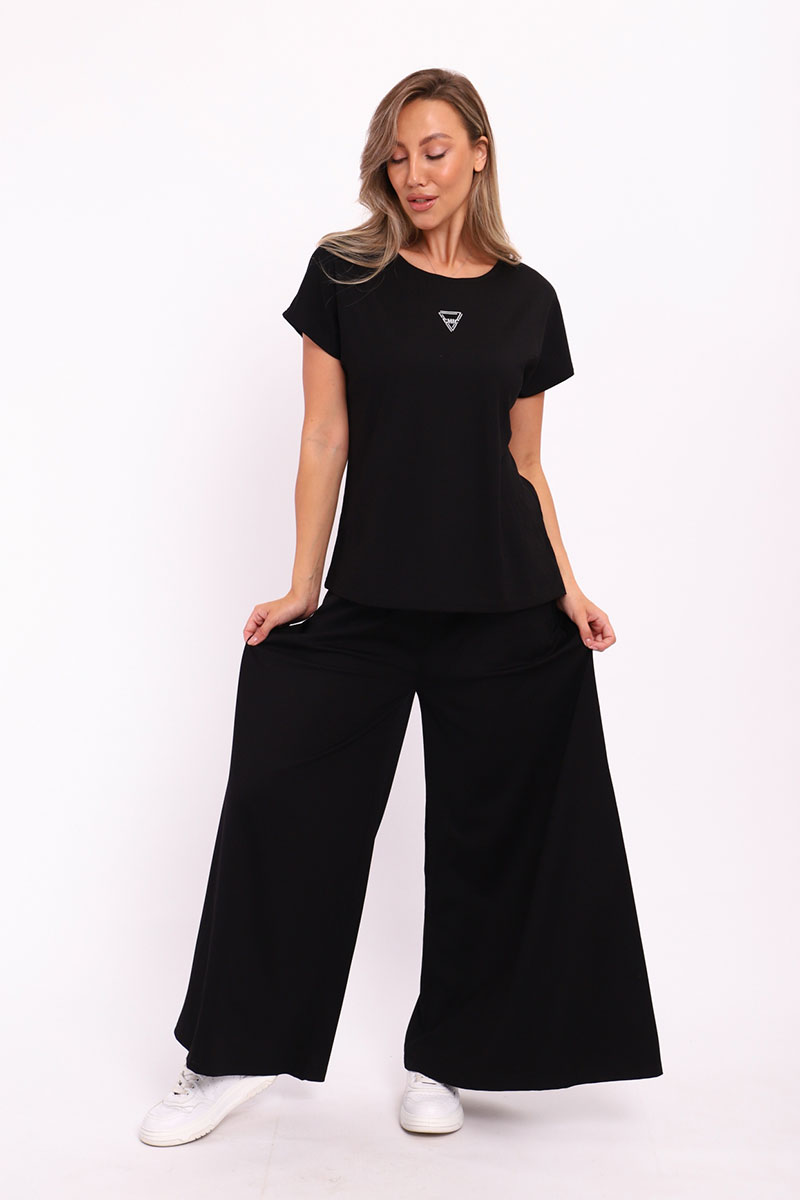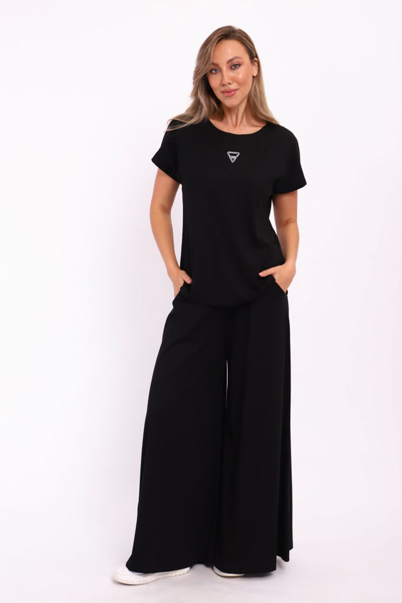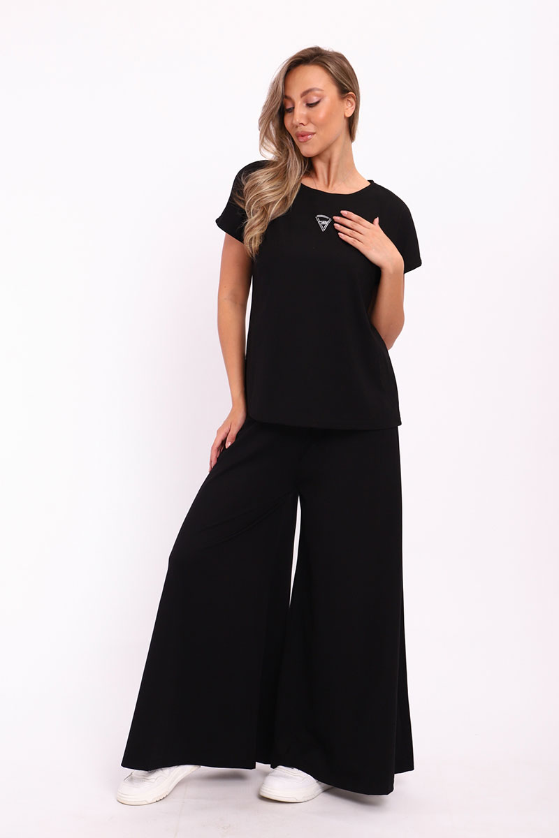 Представляем Вашему вниманию замечательный женский костюм, изготовленный из качественного материала. В этом костюме Вы всегда будете чувствовать себя уютно, удобно и комфортно, так как ткань очень легкая, нежная и приятная к телу. Костюм украшен стильным рисунком и эффектно смотрится. Наряд хорошо сидит на фигуре любого типа и не стесняет движений, даря Вам уверенность в себе.