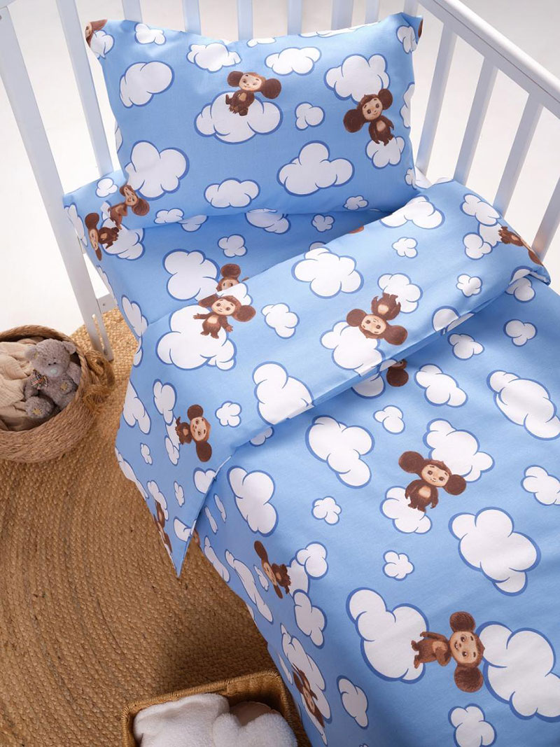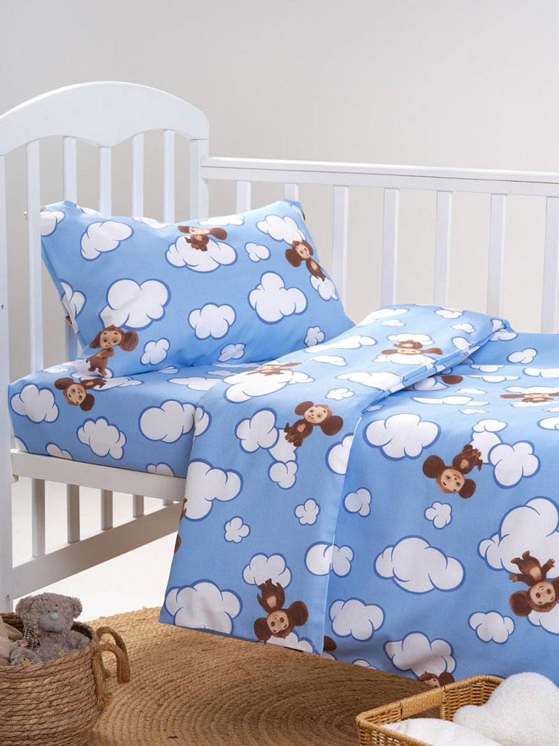 Ясельное постельное белье бязь "Чебурашка Облачко"