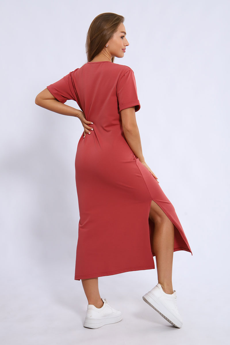 Представляем Вашему вниманию хлопковое платье-футболку с эластаном, свободного кроя, в длине макси, горловина круглая, короткий рукав на манжете, по боковым швам разрезы. Прекрасный вариант на каждый день, подходит для любого типа фигур. Вы гарантированно будете покорять всех окружающих своей привлекательностью и неповторимостью.