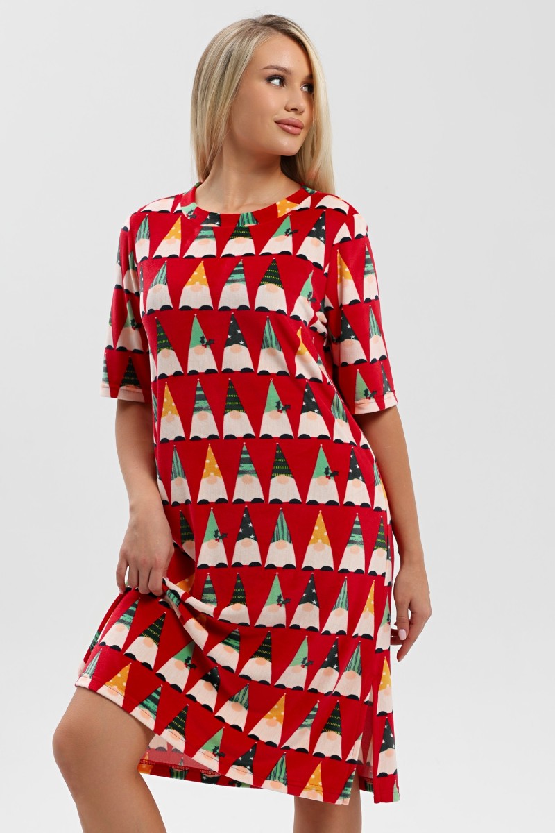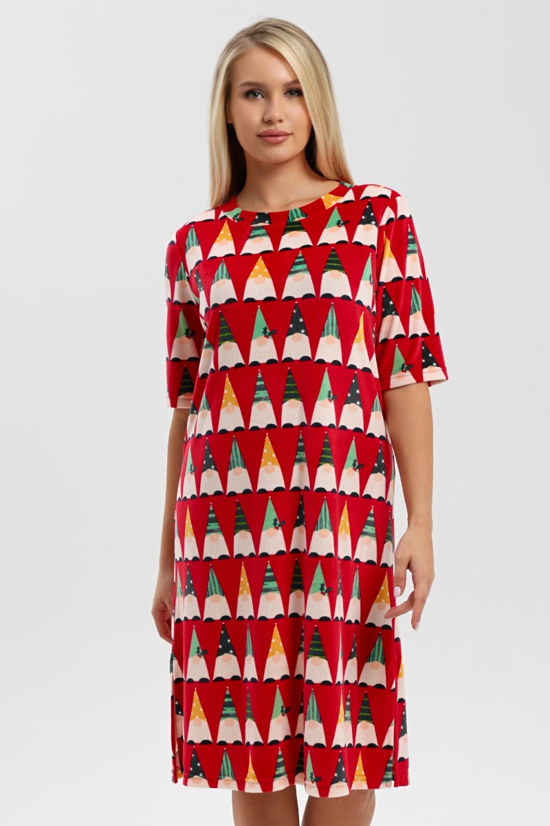Представляем Вашему вниманию тунику из трикотажного полотна «велюр стрейч» с набивным рисунком, свободного покроя, с короткими втачными рукавами, горловиной овальной формы, обработанной втачной планкой и разрезами в боковых швах.
