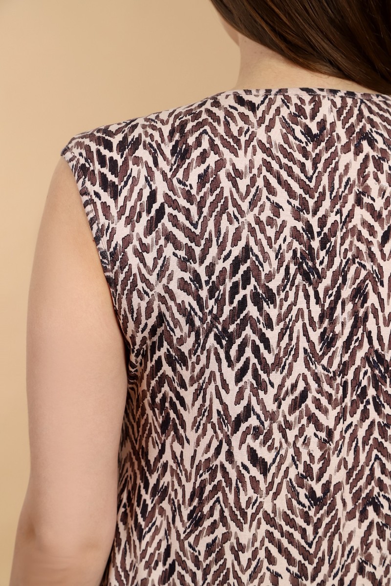 Представляем Вашему вниманию сарафан женский из трикотажного вискозного полотна с набивным рисунком свободного покроя, расширенное книзу, с горловиной V- образной формы, окантованной основным материалом.