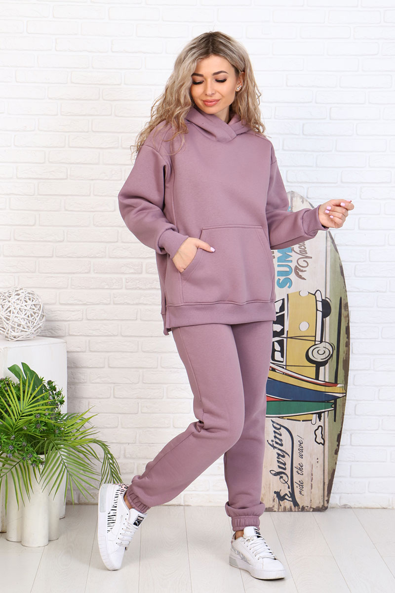 Костюм двойка женский 5321е футер 3-х нитка с начесом пенье (последний размер) сухая роза 54