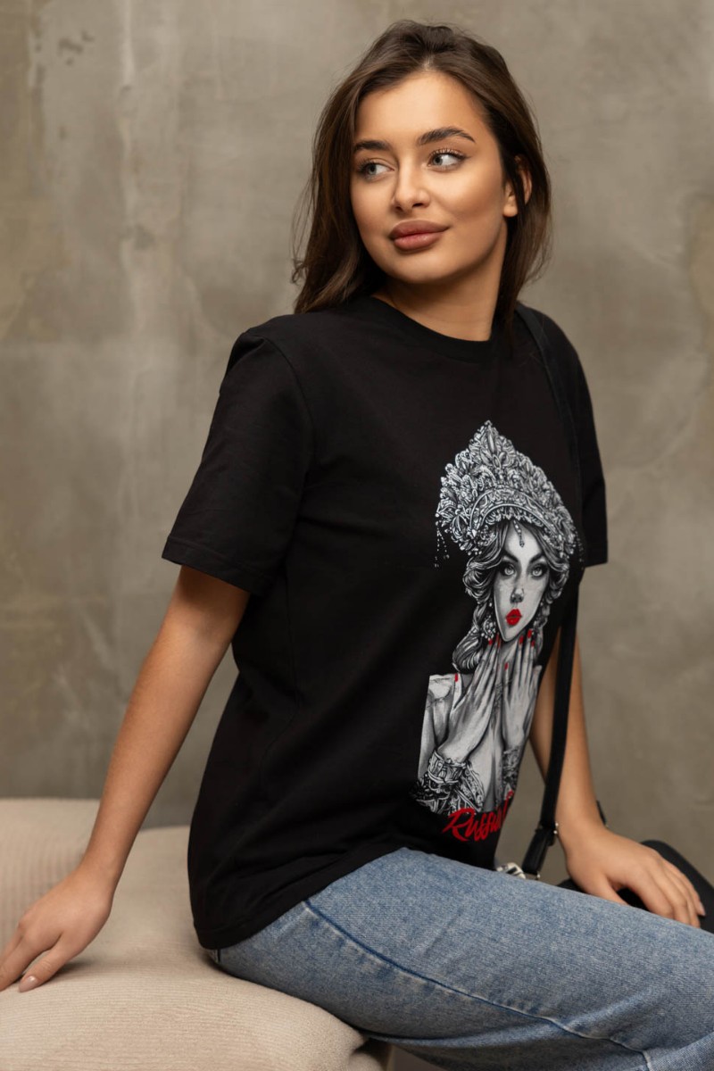 Представляем Вашему вниманию женская футболка из кулирки с лайкрой высокого качества, базового кроя, с коротким рукавом и О-образной горловиной. Печать с нотками патриотизма добавляет изюминку образу.