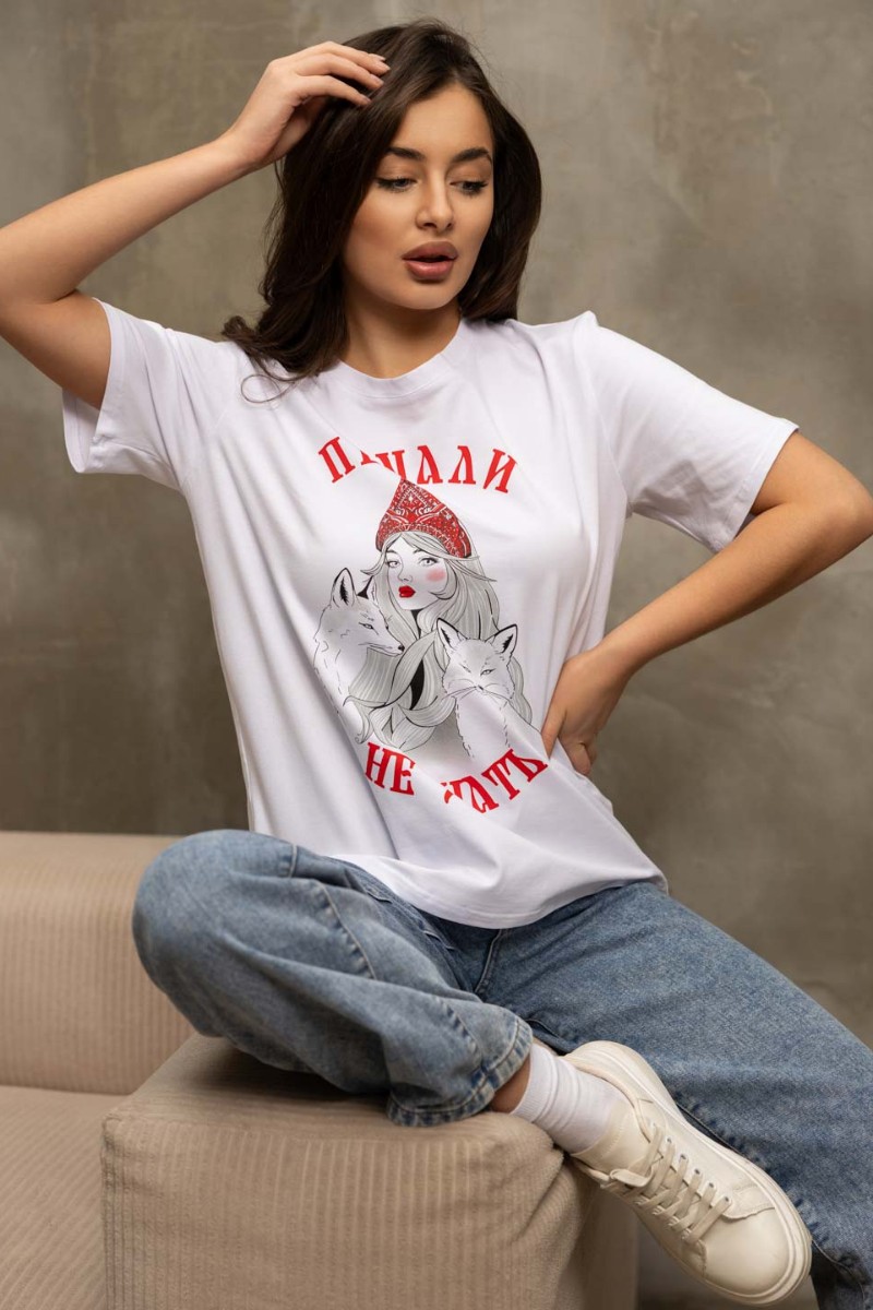 Представляем Вашему вниманию женская футболка из кулирки с лайкрой высокого качества, базового кроя, с коротким рукавом и О-образной горловиной. Печать с нотками патриотизма добавляет изюминку образу.