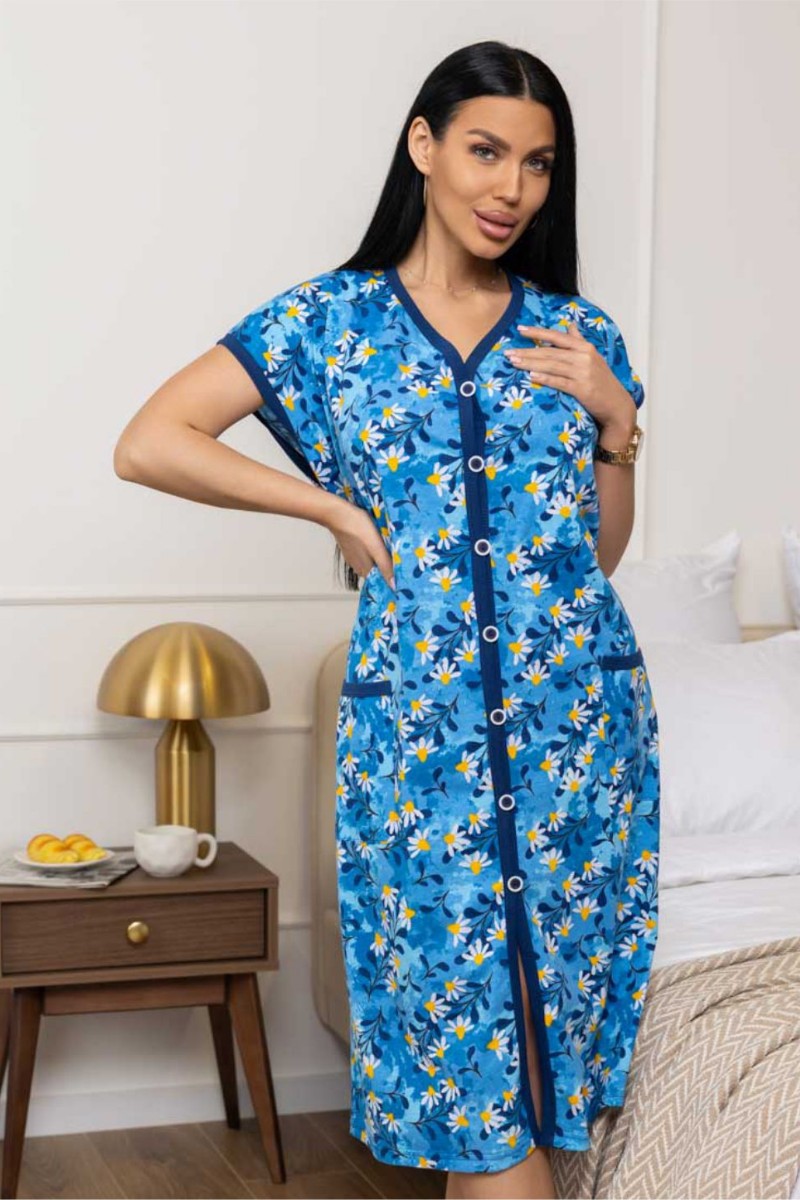 Халат женский 1472/11 кулирка (р-ры: 48-62) синий-желтый