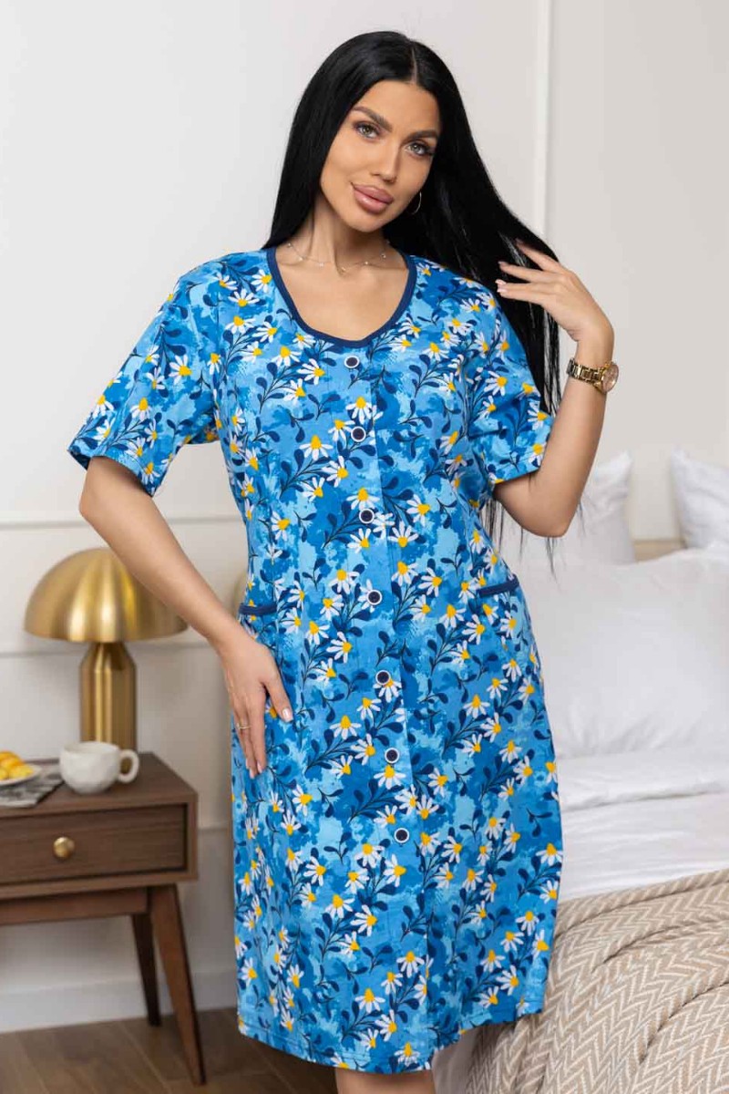 Халат женский 1781/8 кулирка (р-ры: 48-62) синий-желтый
