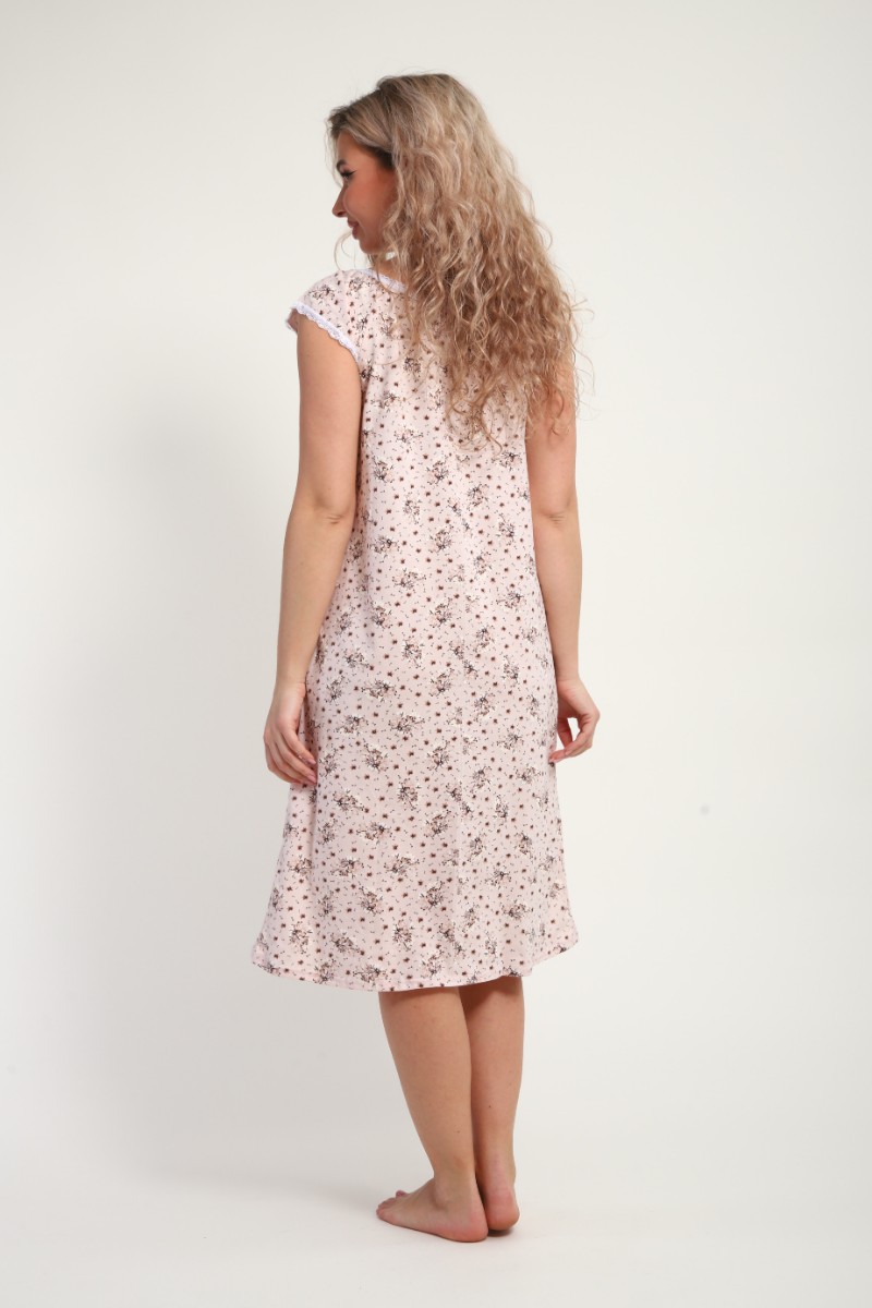 Представляем Вашему вниманию легкую женскую сорочку из кулирки - 100% натурального, дышащего хлопка. Модель имеет расцветку, которая интересно смотрится и поднимает настроение. Изделие красиво сидит на фигуре и подчеркивает её достоинства. В этой сорочке Ваш сон будет максимально приятным и расслабляющим.