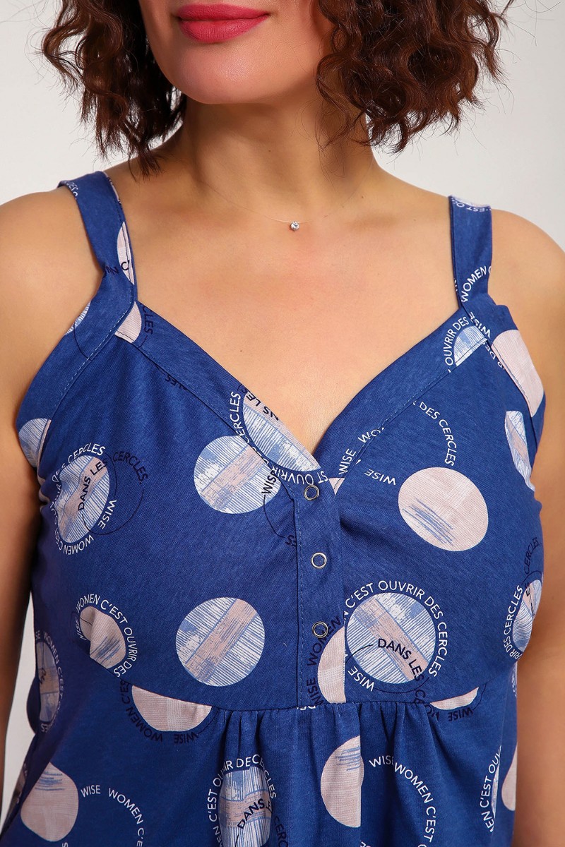 Представляем Вашему вниманию изящную женскую сорочку без рукавов на широких бретельках. Данная модель выполнена из трикотажного полотна кулирка ( хлопок 100%). Полочка отрезная с кнопками. Горловина обработана широкой окантовкой. Отличная модель для сна и кормления.