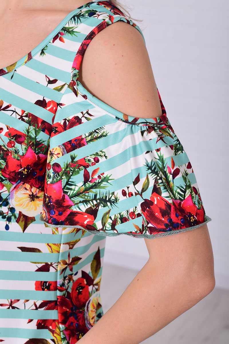 Представляем Вашему вниманию очаровательное женское платье, изготовленное из качественного и приятного к телу материала. Платье представлено в стильной расцветке и с легкостью займет достойное место в Вашем гардеробе. Изысканный рисунок придает этому платью модный и женственный вид и Вы гарантированно будете покорять всех окружающих своей привлекательностью и неповторимостью.