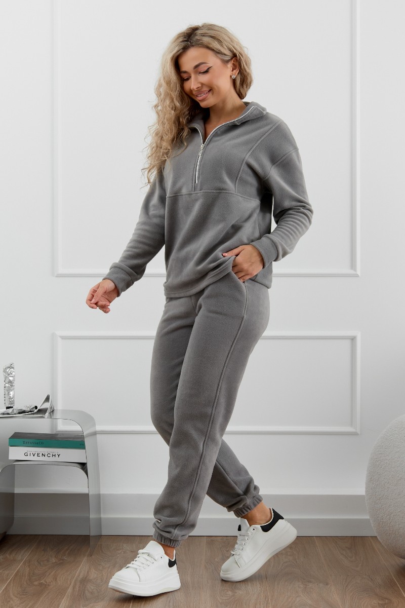 Костюм двойка женский М-973 флис (р-ры: 44-58) серый