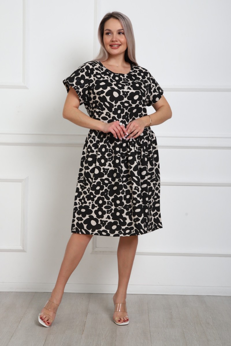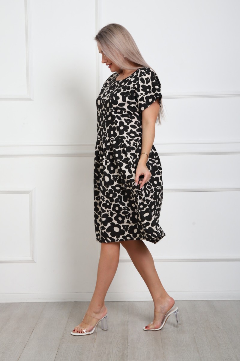 Представляем Вашему вниманию изящную женскую тунику. Горловина округлой формы. Рукав реглан короткий. Платье уместно всегда и везде - в таком наряде можно выглядеть очаровательно и романтично на прогулке. Натуральный состав, классическая длина и силуэт, наличие удобных карманов сделают это изделие любимым в Вашем гардеробе.