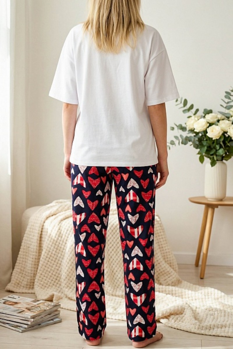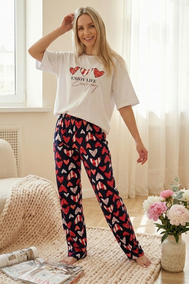 Представляем Вашему вниманию легкую женскую пижаму - идеальное сочетание стиля и комфорта. Футболка имеет короткий рукав и круглый вырез. Брюки свободного прямого кроя дополнены мягким поясом на резинке, который обеспечивает идеальную посадку и свободу движений. Эта пижама создана для уютного сна и отдыха в домашней обстановке.