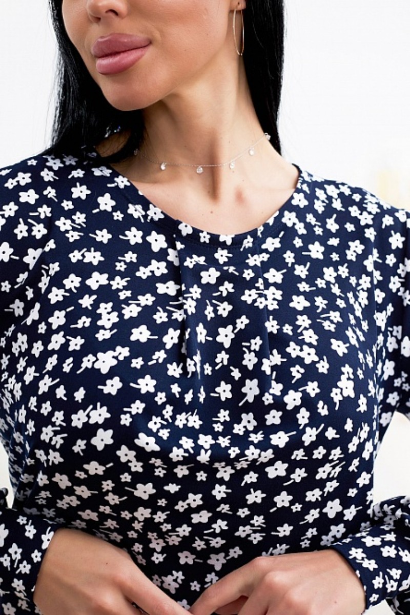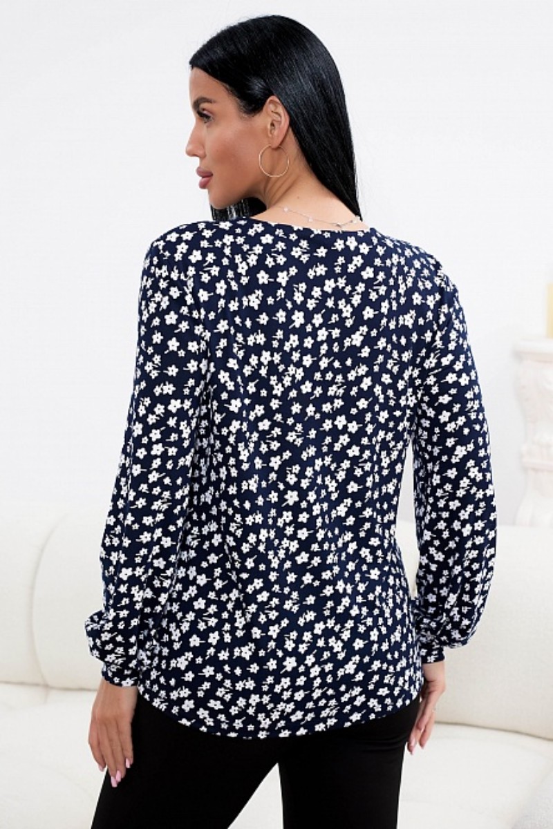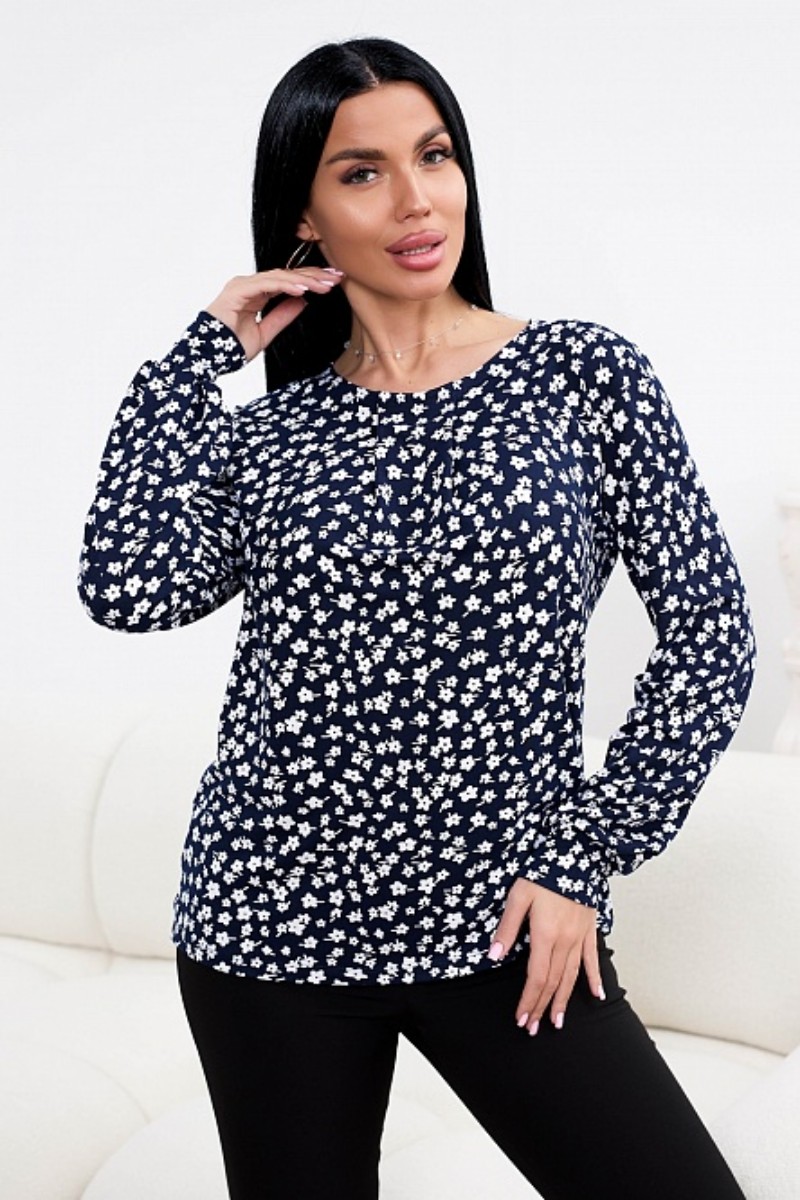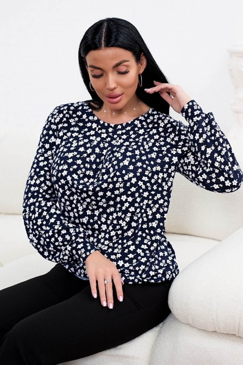 Представляем Вашему вниманию стильный женский лонгслив с точной посадкой по фигуре. Изделие выполнено из нежного трикотажного полотна, украшенного приятным. ненавязчивым принтом, который придает образу особую женственность. Горловина модели округлой формы. Полуприлегающий силуэт лонгслива и свободный рукав, слегка собранный к низу, подарит комфорт и удобство движений.