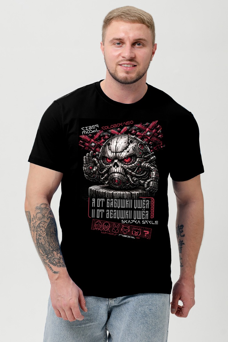 Футболка мужская №8592 кулирка (р-ры: 46-70) черный кибер колобок