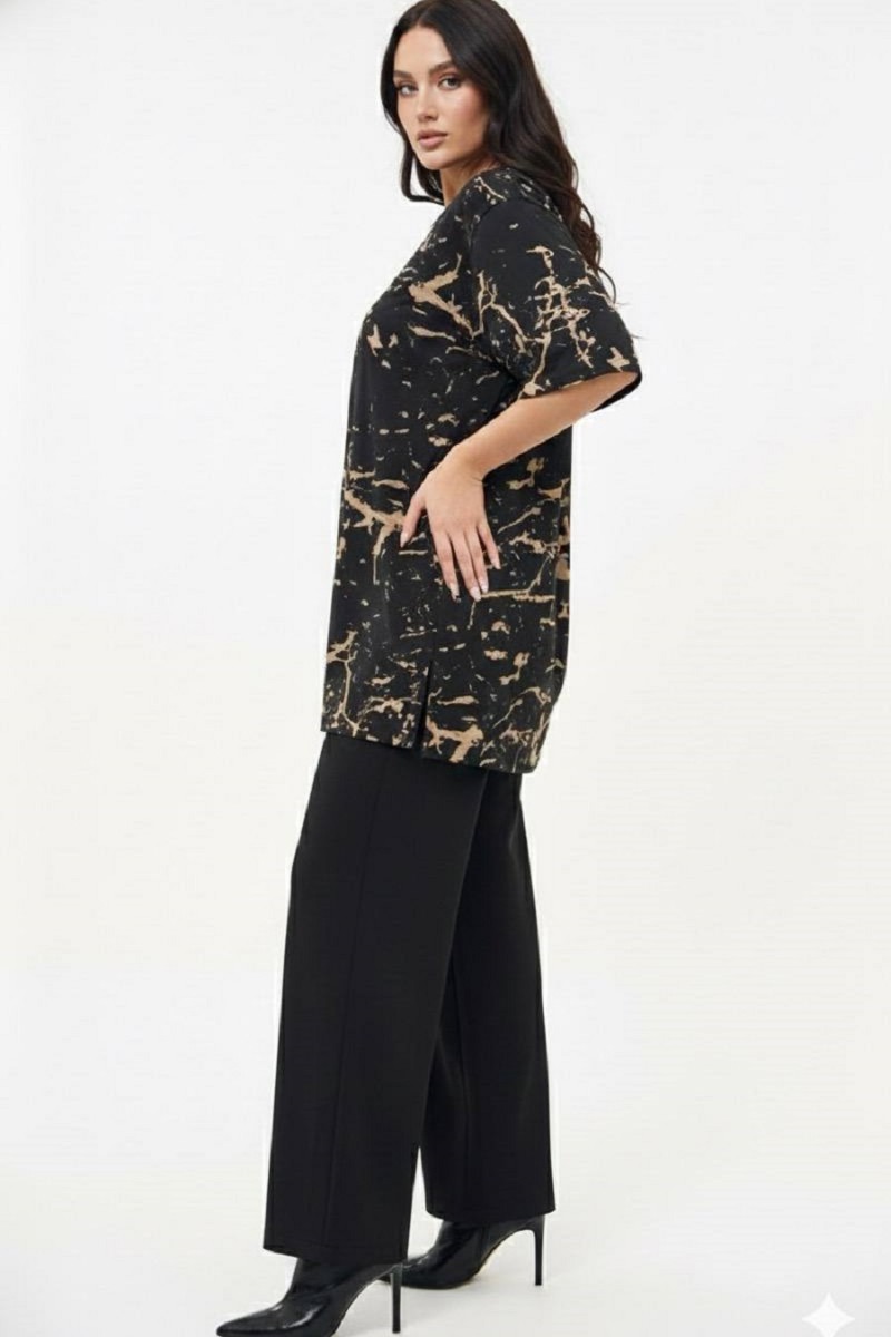 Представляем Вашему вниманию женский повседневный костюм – воплощение элегантности и непревзойденного комфорта. Этот комплект, состоящий из свободных брюк и футболки, создан для современной девушки, ценящей качество, стиль и универсальность. Ощутите роскошь премиальной вискозы: Костюм выполнен из высококачественной вискозы, которая дарит коже ощущение нежности и шелковистости. Этот материал обладает превосходной воздухопроницаемостью, позволяя телу дышать даже в самые жаркие дни, а также приятной прохладой и мягкостью. Вискоза не электризуется, не скатывается и сохраняет свой первозданный вид надолго, что делает этот костюм идеальным выбором для ежедневной носки. Свободный крой для абсолютной свободы движений: Дизайн костюма продуман до мелочей, чтобы обеспечить максимальный комфорт и свободу движений. Свободный крой брюк и футболки создает расслабленный, но при этом стильный силуэт, который подходит абсолютно всем. Вы будете чувствовать себя уверенно и непринужденно в любой ситуации, будь то прогулка по городу, встреча с друзьями или домашний отдых. Универсальность для любого роста: Мы позаботились о том, чтобы этот костюм стал идеальным дополнением к гардеробу каждой девушки, независимо от ее роста. Свободный крой и продуманные пропорции позволяют костюму прекрасно смотреться как на миниатюрных девушках, так и на высоких красавицах. Брюки легко адаптируются под разную длину ног, а футболка создает гармоничный образ, подчеркивая достоинства фигуры. Стиль, который говорит сам за себя: Это не просто одежда, это заявление о вашем безупречном вкусе. Минималистичный дизайн, высокое качество материалов и идеальная посадка делают его универсальным решением для создания множества образов. Сочетайте футболку с другими элементами вашего гардероба или носите костюм как единое целое – вы всегда будете выглядеть стильно и элегантно. Премиальная вискоза: Невероятная мягкость, воздухопроницаемость и долговечность. Свободный крой: Максимальный комфорт и свобода движений. Универсальность: Идеально подходит для девушек любого роста. Стильный дизайн: Элегантность и актуальность на каждый день. Легкость в уходе: Сохраняет свой первозданный вид после многочисленных стирок.