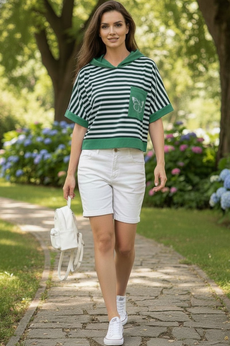 Представляем Вашему вниманию укороченную женскую футболку с капюшоном и нагрудным кармашком, силуэта оверсайз. Шнурок в капюшоне только на розовом цвете. В других цветах шнурка нет.